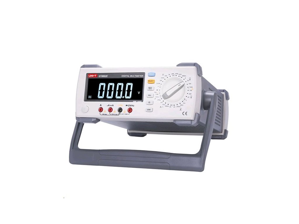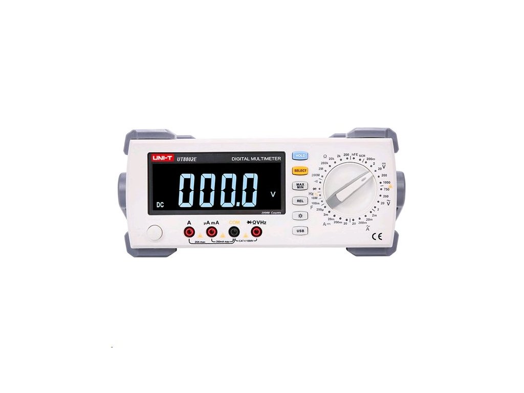 UT8802 je stolový multimeter s manuálnou voľbou rozsahu, zobrazením hodnoty až do 19 999, veľkým podsvieteným LCD displejom, ochranou proti preťaženiu v celom rozsahu a jedinečným dizajnom.