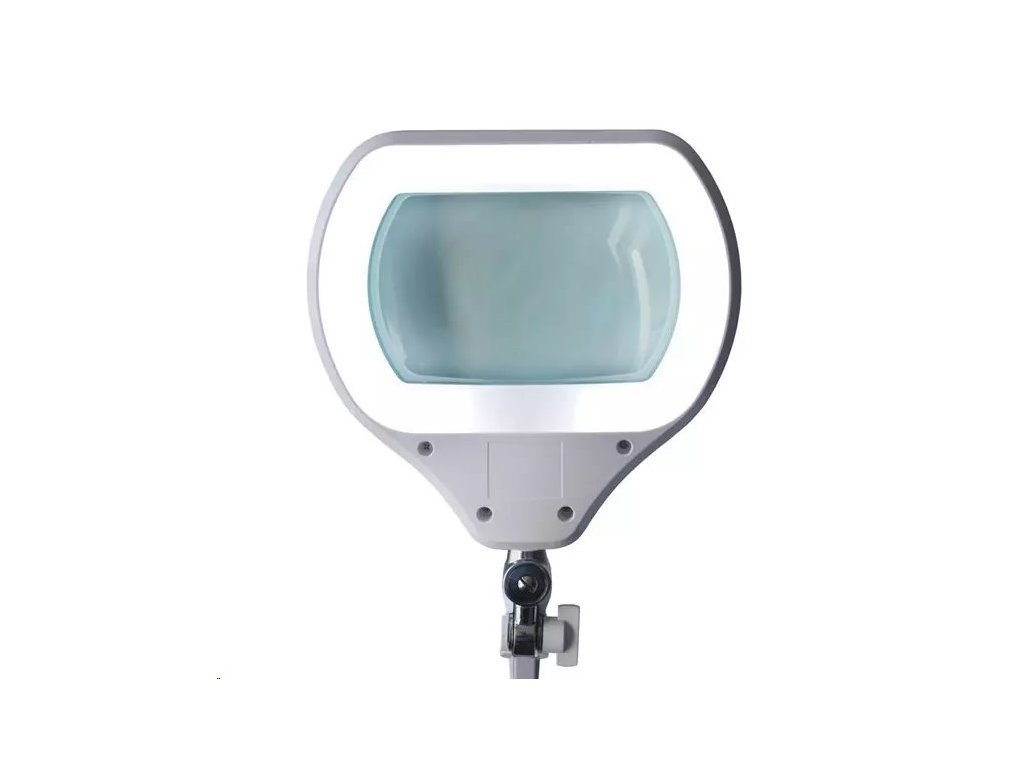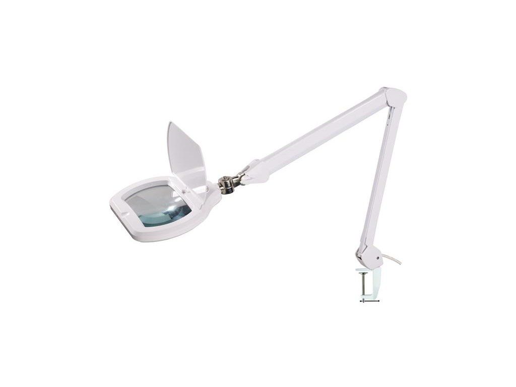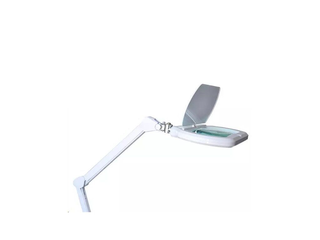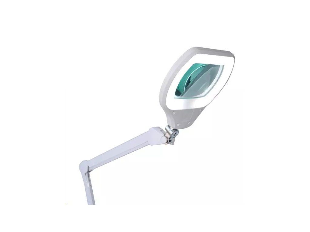 Univerzálna, výkonná, ale úsporná stolová lupa so 72 SMD LED diódami, teraz s obdĺžnikovým tvarom šošovky a plynulým dotykovým ovládaním jasu osvetlenia.