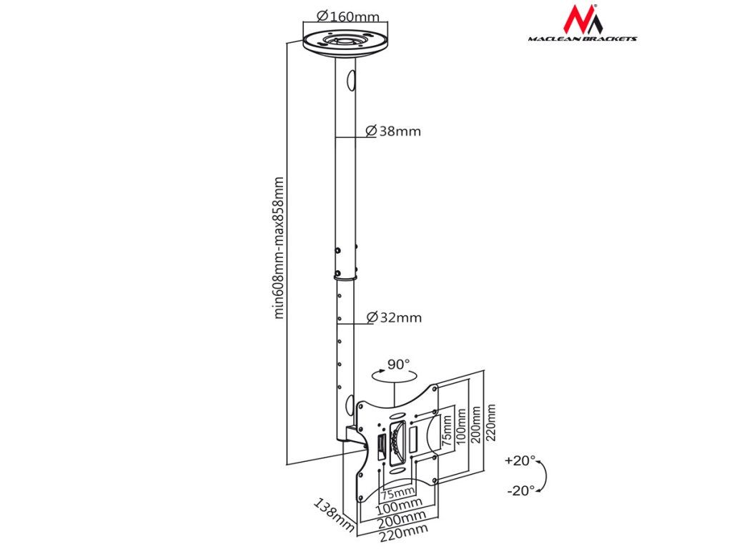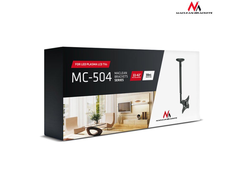 Stropný držiak na TV Maclean, 23-42", 50 - 85 cm, 30 kg, čierny, MC-504A B