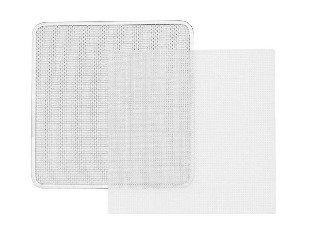 K sušičke navyše získate nielen 10 základných sušiacich plát v nerezovom prevedení, ale aj 10 vložiek s jemným sieťovaním. Využijete ich pre sušenie drobných surovín, ako sú napríklad huby či bylinky alebo dokonalé domáce musli.