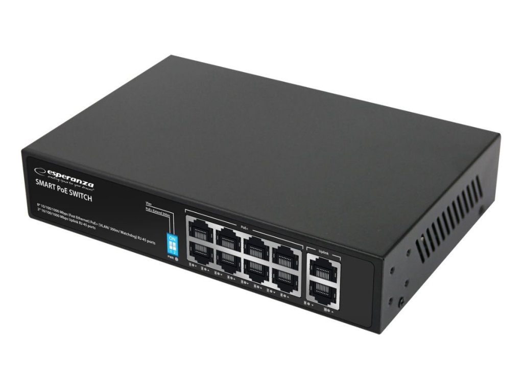 Switch Esperanza Matrix ENS108, 10/100/1000Mbps, 8PoE+2, 120WPopis:
