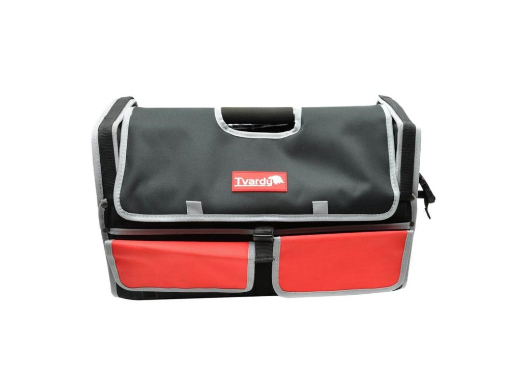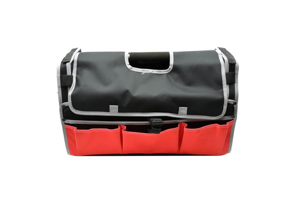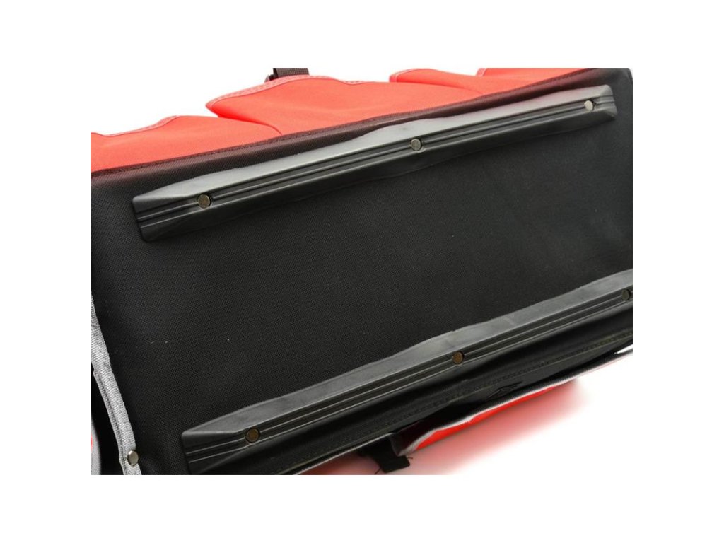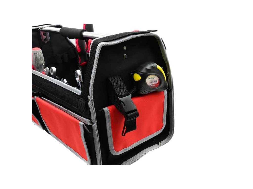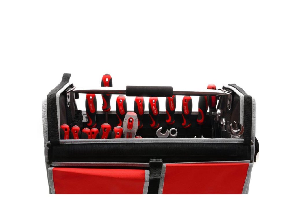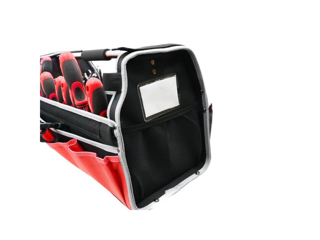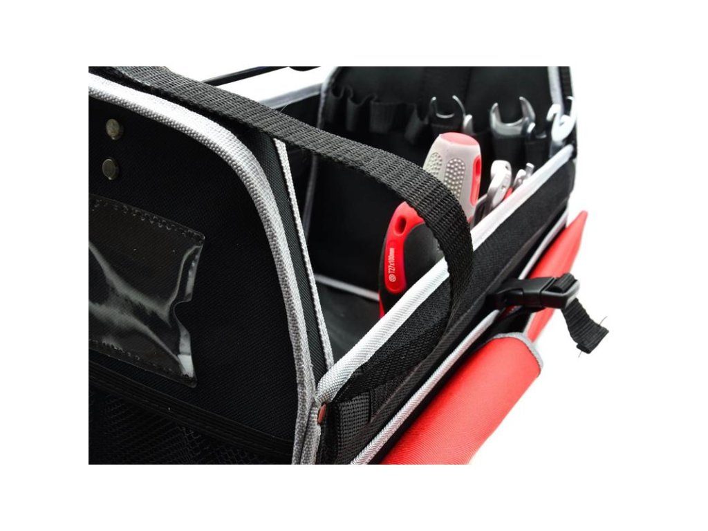 Tato osvědčená taška na nářadí disponuje velkým prostorem, 47 kapsami uvnitř brašny, držáky na nářadí, klíče a šroubováky. Na přední straně tašky je velká kapsa se zapínáním na přezku a dvě kapsy uzavíratelné na suchý zip, na zadní straně tašky je velká kapsa se zapínáním na přezku a tři otevřené kapsy. Má také elastickou síťovanou kapsu na bocích, průhlednou folii na štítek či jmenovku, háček na metr, kapsu se zapínáním na suchý zip a popruh se zapínáním na přezku. Taška disponuje i kovovou rukojetí pokrytou měkkým polstrováním pro pohodlné přenášení, nastavitelným ramenním popruhem, dvěma elastickými poutky v horní části tašky a dvěma popruhy se suchým zipem