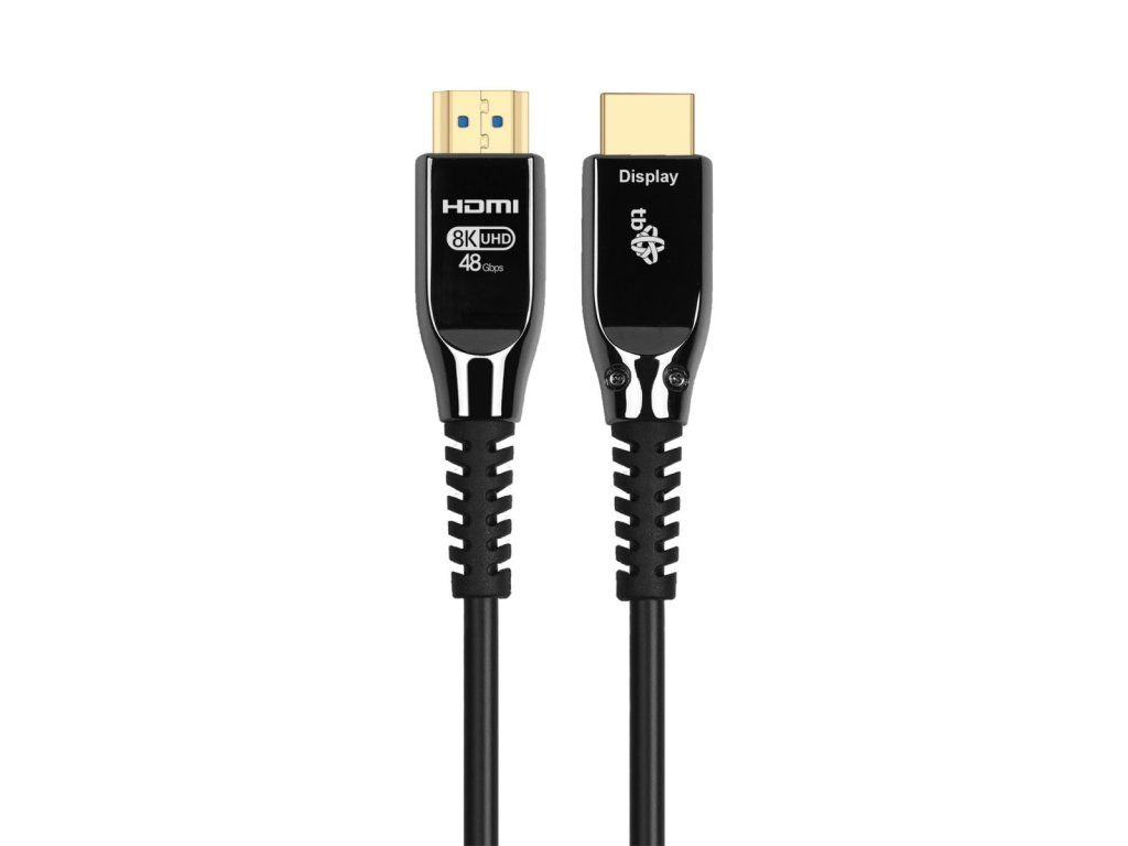 TB HDMI Kabel v2.1, černý, 15 m Moderní optický kabel HDMI 2.1V představuje spolehlivé řešení pro profesionální audiovizuální instalace, které podporuje rozlišení 8K a nejvyšší kvalitu obrazu i zvuku. Technologie optických vláken zaručuje stabilní signál bez ztrát i na velké vzdálenosti, což z něj činí ideální volbu pro kanceláře, konferenční místnosti, učebny a systémy digitálního značení. Konektory HDMI AA s 24karátovým pozlacením zajišťují odolnost, odolnost proti korozi a bezpečné připojení.Dodatočné parametre