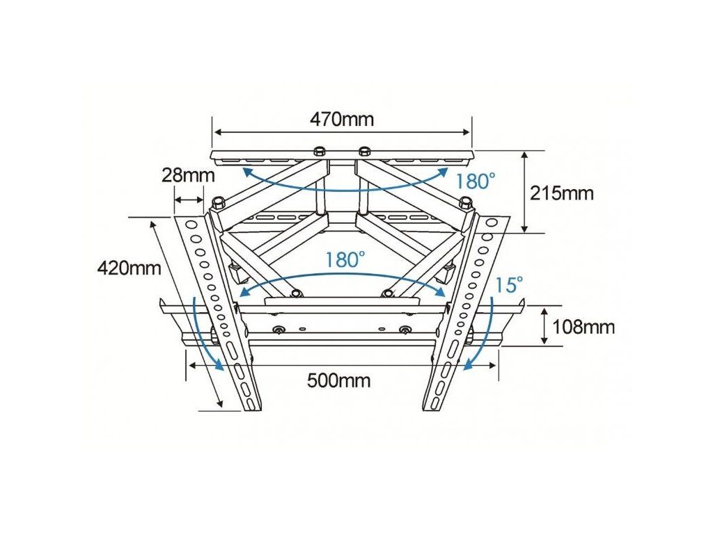 Konstrukce pro upevnění TV na zeď *Použití: TV *Typ držáku: na zeď *Maximální velikost obrazovky: 55'' *VESA: *100 x 100 *200 x 100 *200 x 200 *400 x 200 *400 x 400 *Maximální hmotnost: 55 kg *Rohový držák: ne *Materiál: kov *Barva: černáDodatočné parametre