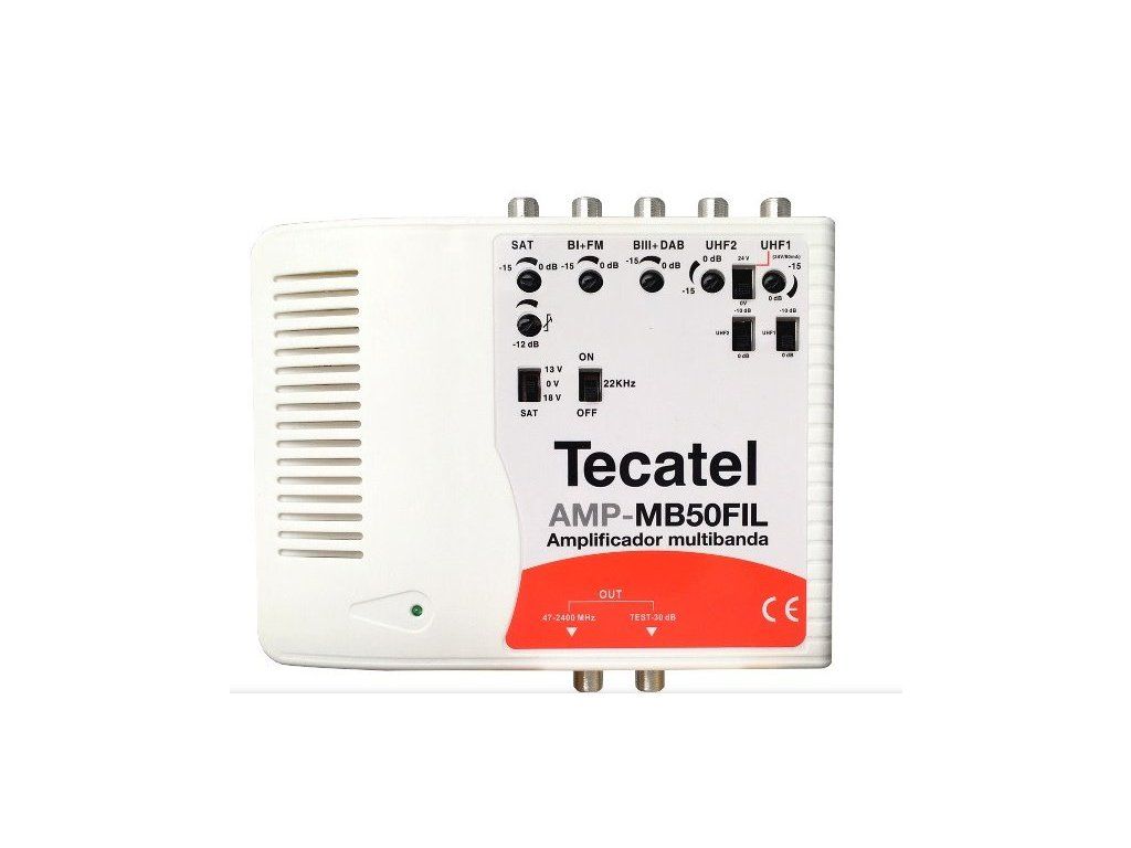 TECATEL zosilňovač AMP-MB50FIL 45dB, LTE, 1xSAT, 1xBI+FM, 1xBIII+DAB, 2xUHF 5G, LTE 700 MHz, 5 vstupov