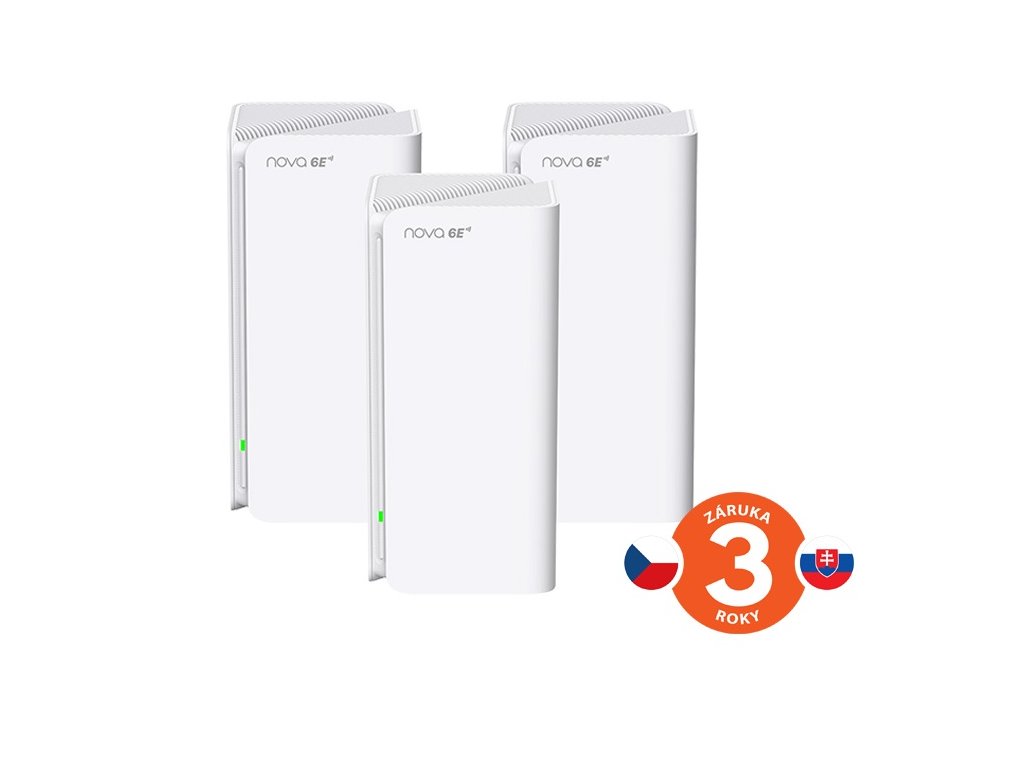 Tenda Nova MX21 Pro (3-pack) WiFi6E AXE5700 Mesh Gigabit systém, 9x GLAN/GWAN, WPA3, VPN, CZ app