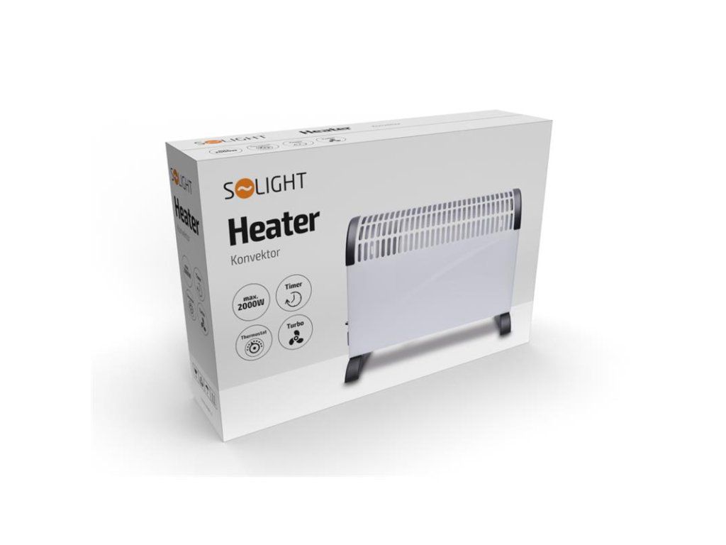 Konvektor je vybavený časovačom s 24-hodinovým režimom a funkciou turbo, ktorá využíva ventilátor na rýchlejšie vyhriatie miestnosti.