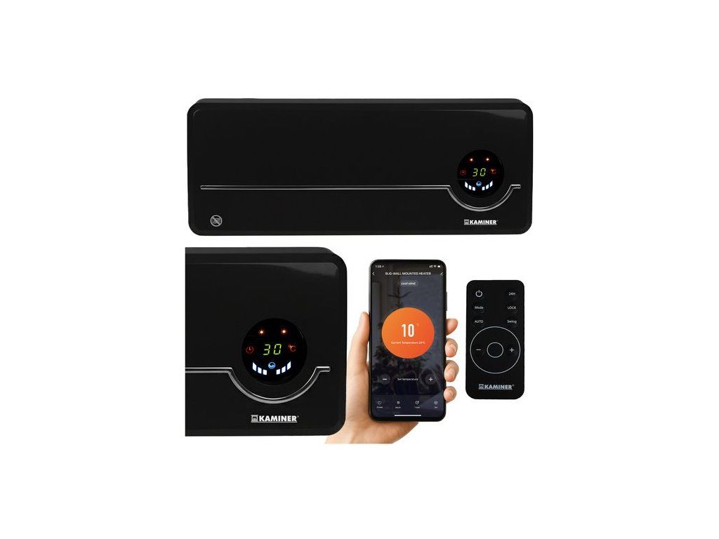Teplovzdušný ventilátor keramický Kaminer Airo 26388, nástenný, WiFi, 1000/2000W čierny