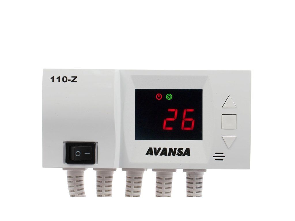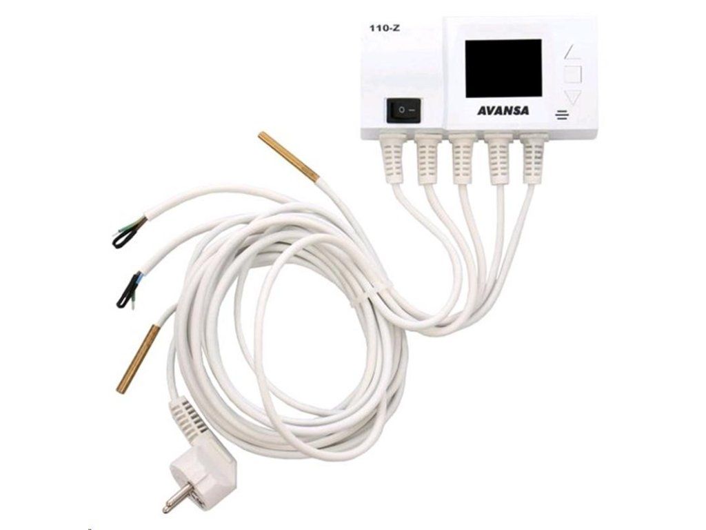Termostat Avansa 110-Z je určený na ovládanie čerpadla pre vykurovanie a čerpadla pre zásobník TÚV. Čerpadlo vykurovania sa zapne, keď teplota kotla prekročí teplotu zapnutia kotla pre vykurovanie nastavenú používateľom. Čerpadlo zásobníka TÚV sa spúšťa na základe rozdielu teplôt. Čerpadlo zásobníka sa zapne, keď teplota kotla prekročí teplotu zásobníka o nastavenú hysterézu. Čerpadlo pracuje dovtedy, kým sa teploty kotla a zásobníka nevyrovnajú alebo kým sa nedosiahne nastavená teplota zásobníka.