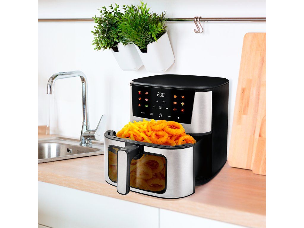 TESLA AirCook Q60 XXL Pro je vybavena velkým sedmilitrovým košem s průzorovým okénkem a osvětlením, takže můžete sledovat průběh vaření bez otevírání fritézy.