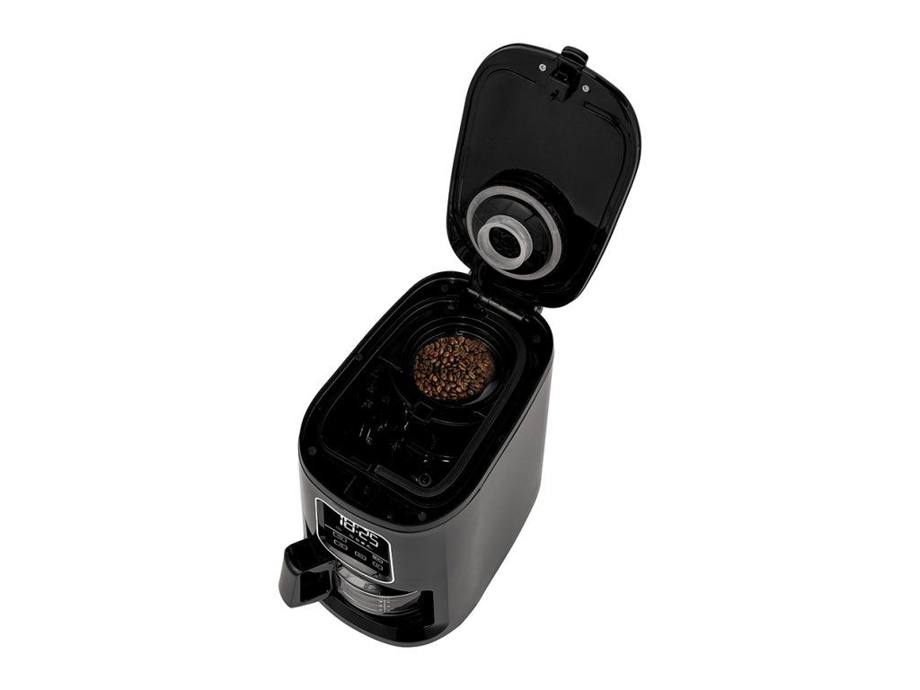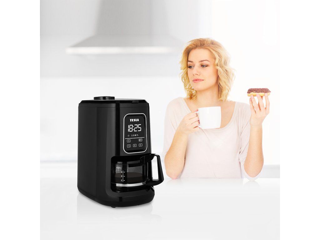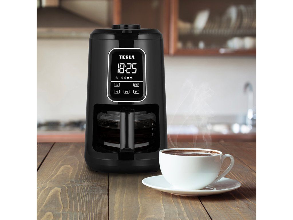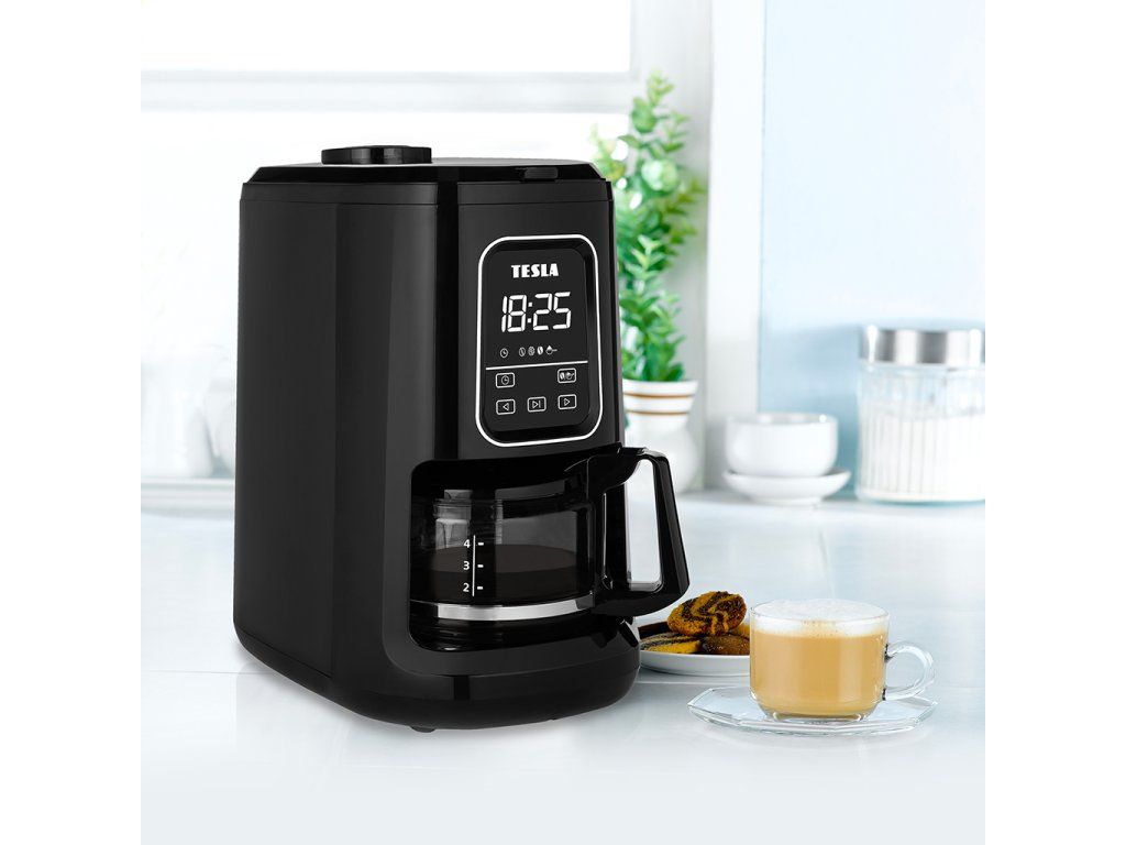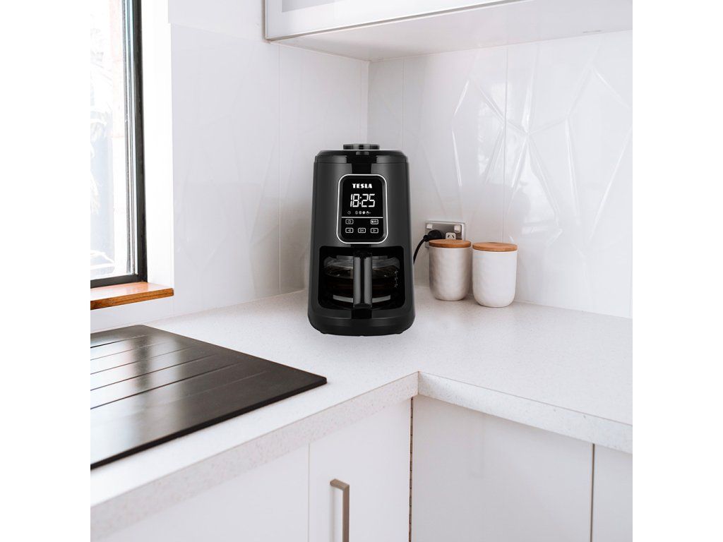 Kávovar s integrovaným mlýnkem TESLA CoffeeStar ES400 v kuchyni ušetří mnoho místa. Skleněná konvice o objemu 600 ml je vhodná pro přibližně čtyři šálky kávy, což je ideální velikost pro rodinu nebo jednotlivce.