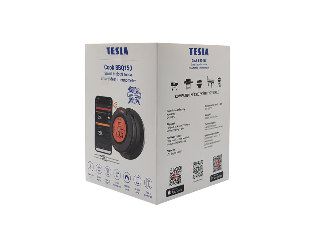 Teplotní sonda TESLA Cook BBQ150 je ideální pro vaření, pečení, grilování i uzení. Pokročilý teploměr umožňuje sledovat teplotu pokrmu s maximální přesností a dosahovat perfektních výsledků při každém použití. Sonda je vybavena přehledným LCD displejem a aplikací, která upozorní na dosažení požadované teploty. Teplotu lze nastavit podle preferencí pro různé stupně propečení, od Rare po Well Done, s možností výběru z přednastavených programů nebo manuálního nastavení.