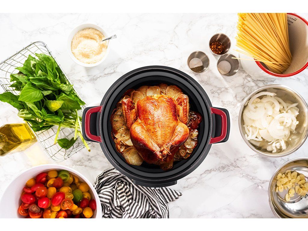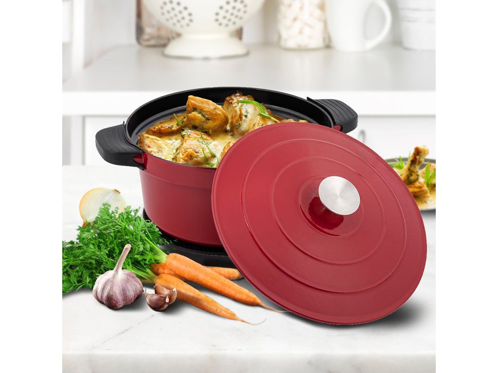 Vnitřní hrnec lze vyjmout ze základny sporáku, takže jej můžete použít na na indukci, elektrickém i plynovém sporáku nebo v troubě. Pohodlné servírování jídla přímo na stole vám umožní praktická silikonová podložka a silikonové kryty madel. Tento multifunkční hrnec je připraven uspokojit všechny vaše kulinářské potřeby a zároveň dodat vaší kuchyni nádech elegance.