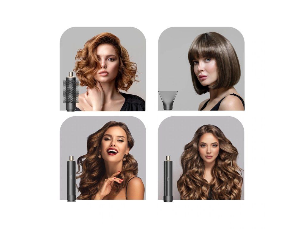 Fén se přizpůsobí vašemu stylu i náladě. Součástí balení jsou čtyři nástavce – koncentrátor pro cílené vysoušení, tvarovací kartáč pro uhlazení a dva nástavce na vlny (levý a pravý) pro přirozené natočení vlasů proudem vzduchu. Bez složité manipulace tak snadno vytvoříte hladký účes, objem i jemné vlny – jedním přístrojem, bez nutnosti dalších pomůcek.