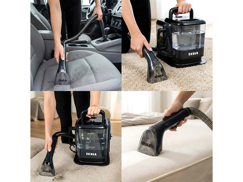 TESLA PowerWash & Steam Station TQS600 kombinuje silný sací výkon s inovativním čištěním párou. Toto řešení umožňuje odstranit i velmi odolné nečistoty bez použití chemických přípravků.