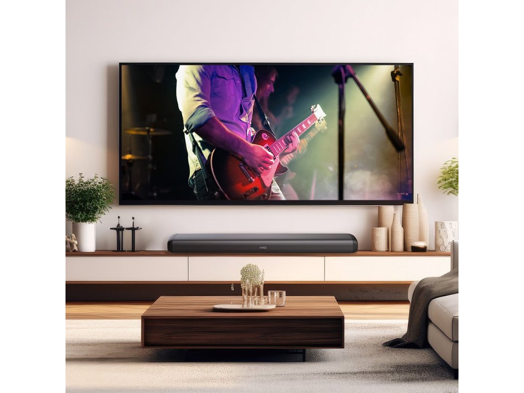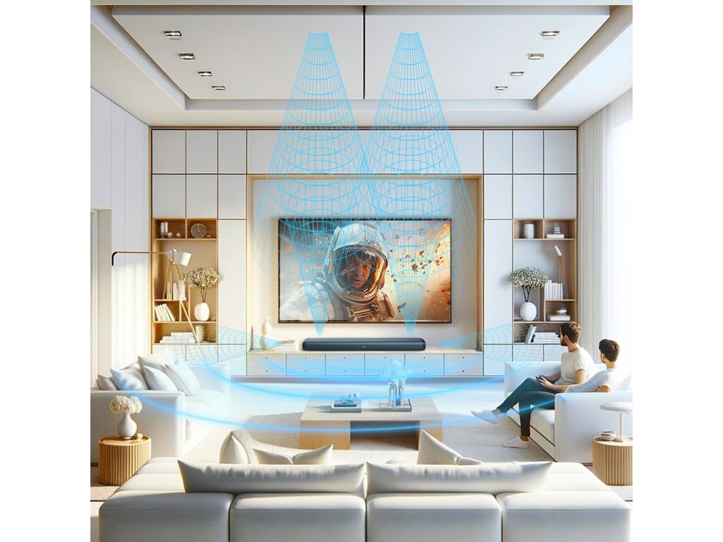 Soundbar poskytuje hluboké basy, které vám umožní cítit každý tón ve vaší oblíbené hudbě nebo filmu. Nejenže basy jsou bohatší a plnější, ale také výšky jsou křišťálově čisté a přesné, což zajišťuje ostrý a detailní zvukový zážitek. Tato kombinace výjimečných basů a ostrých výšek znamená, že vše od nejjemnějších tónů po nejsilnější beaty je reprodukováno s maximální čistotou a rozlišením, což vám umožní zcela se ponořit do zvukového prostředí.