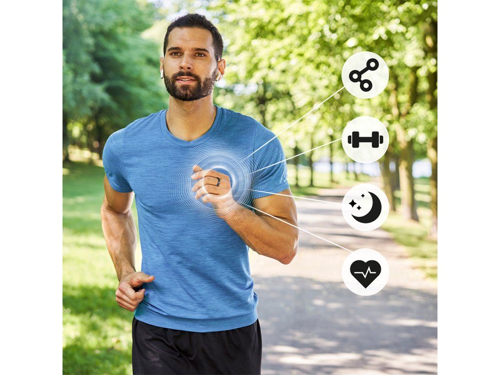 - monitoruje spánek, tepovou frekvenci, obsah kyslíku v krvi, variabilitu srdeční frekvence, zónu srdečního tepu, stres, sportovní aktivitu, ovulaci a menstruační cyklus