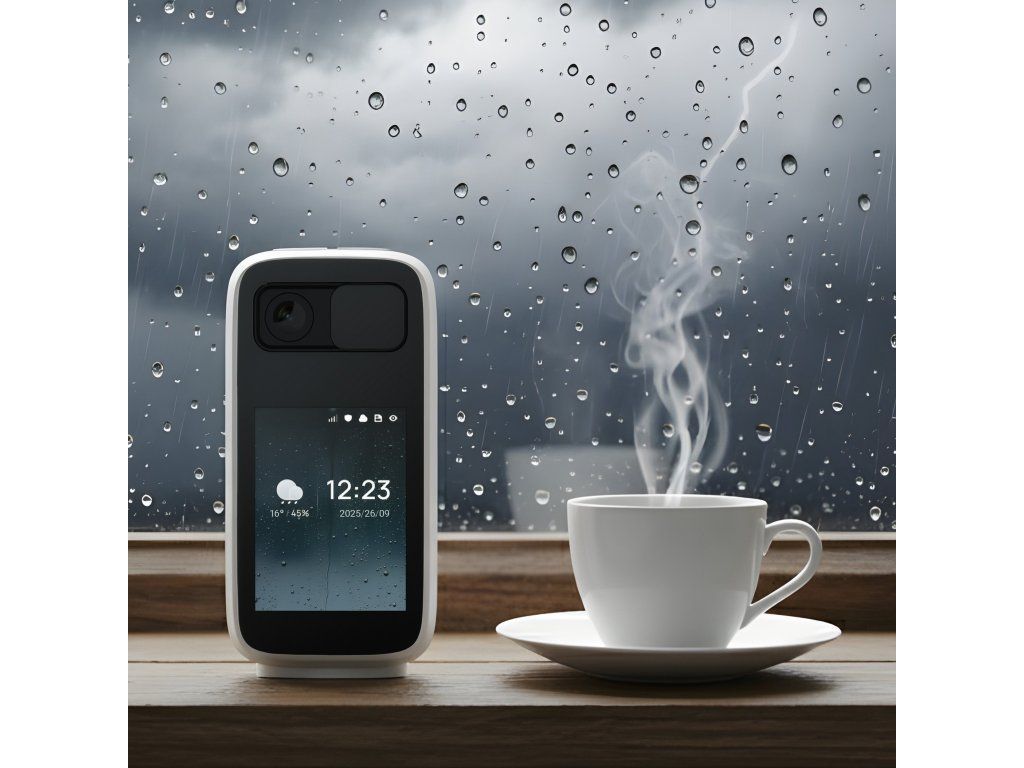 Součástí kamery je přehledný 2,8" displej, který kromě náhledu obrazu z kamery zobrazuje také užitečné informace, jako je aktuální čas, datum nebo počasí - lze si vybrat z různých motivů zobrazení podle vlastního vkusu. Celé provedení působí moderně a elegantně – kamera tak není jen praktickým pomocníkem, ale i stylovým doplňkem, který přirozeně zapadne do jakéhokoli interiéru.