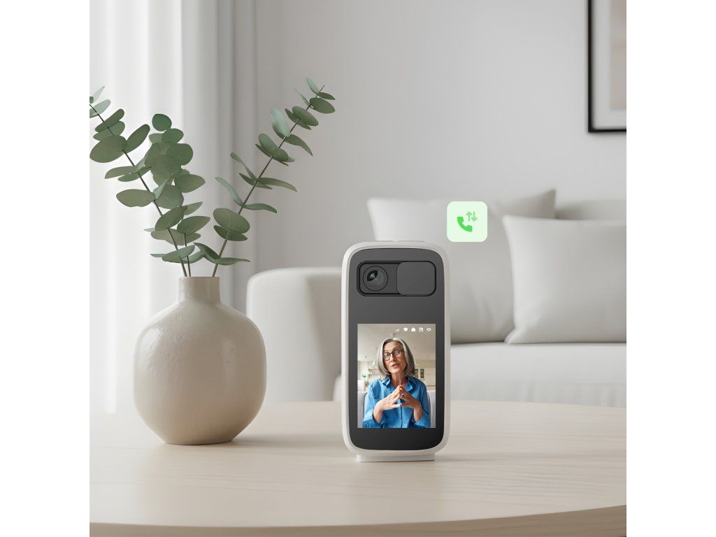 Na horní straně kamery jsou tlačítka, kterými lze jediným stiskem navázat spojení do aplikace TESLA Smart – ať už formou videohovoru nebo jen hlasově. Stejně tak může hovor zahájit i uživatel z aplikace. Kamera tak umožňuje obousměrnou komunikaci v reálném čase – třeba když dítě z domu volá rodičům, nebo když senior potřebuje dát vědět, že něco potřebuje, aniž by musel mít telefon po ruce.