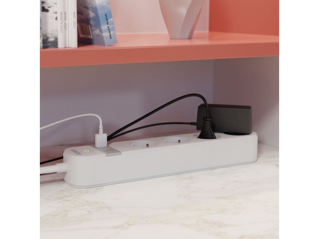Ovládejte na dálku větší množství zařízení. Chytrý prodlužovací přívod dodá každému spotřebiči chytré funkce a umí napájet až 7 zařízení současně, včetně těch s USB-A i moderními USB-C kabely. S aplikací v mobilu přes Wi-Fi nastavíte nejen automatizace, ale získáte i přehled o spotřebě, čímž můžete optimalizovat provoz domácnosti a ušetřit.