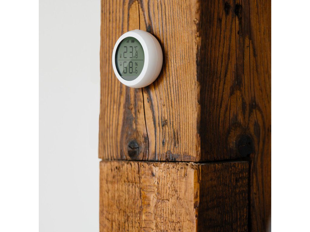 Senzor funguje jako čidlo, které neustále monitoruje své okolí. Naměřenou teplotu a vlhkost zobrazuje přehledně přímo na displeji a zároveň posílá data do mobilní aplikace ve vašem telefonu.