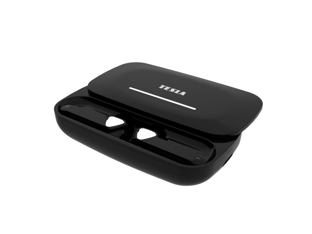 Užitečnou funkcí těchto sluchátek je, že se automaticky zapnou, jakmile je vyjmete z pouzdra, a vypnou se, když je do něj vložíte. To šetří energii a umožňuje vám začít poslouchat hudbu bez jakéhokoli prodlení. TESLA Sound EB20 vás bude provázet po celý den bez nutnosti neustálého nabíjení.