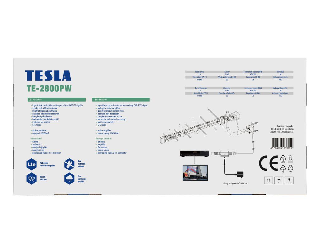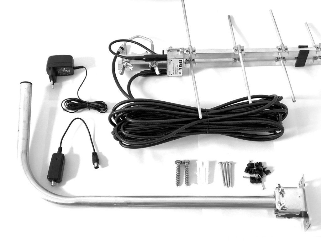 TESLA TE-2800 PW - venkovní anténa pro DVB-T2, 470-790 MHz, 9 dBi, aktivní zesilovač, montážní SET