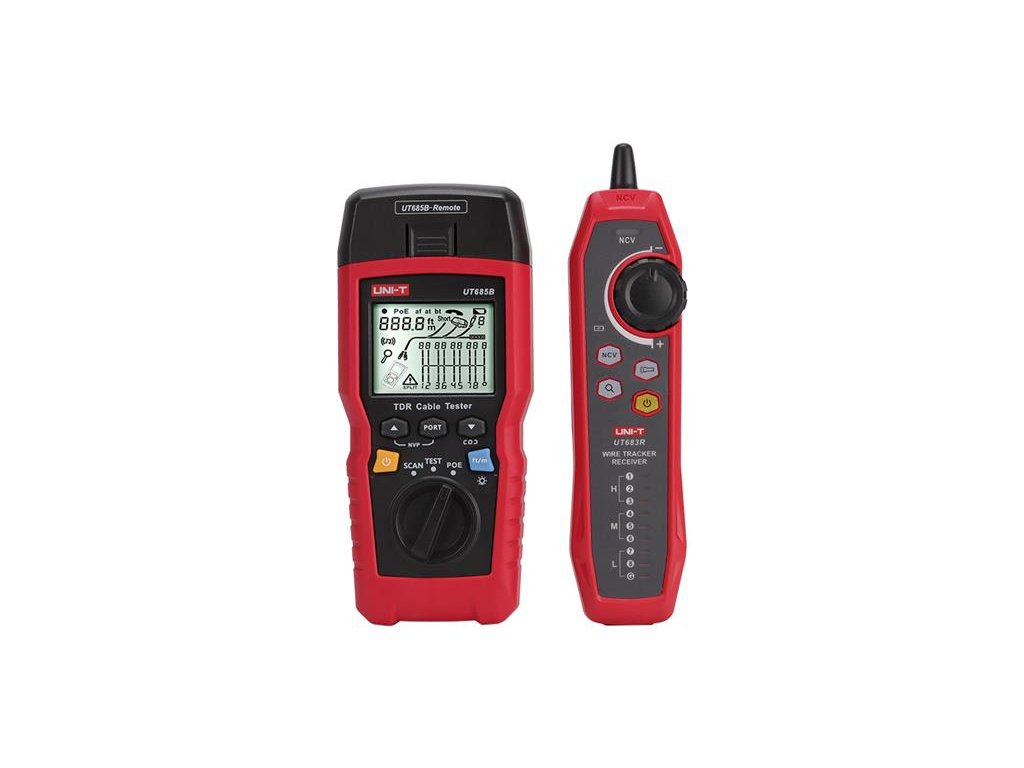 Tester kabelu UT683B KIT je ruční tester kabelů TDR, vhodný pro měděné kabely (CAT 5E, CAT 6, CAT 6A nebo CAT 8), který se používá k detekci a diagnostice stavu zapojení kroucených párů a koaxiálních kabelů, detekci síťových služeb, zkratů/otevřených obvodů v síťové kabeláži, rozdělení páru, chybného zapojení atd.