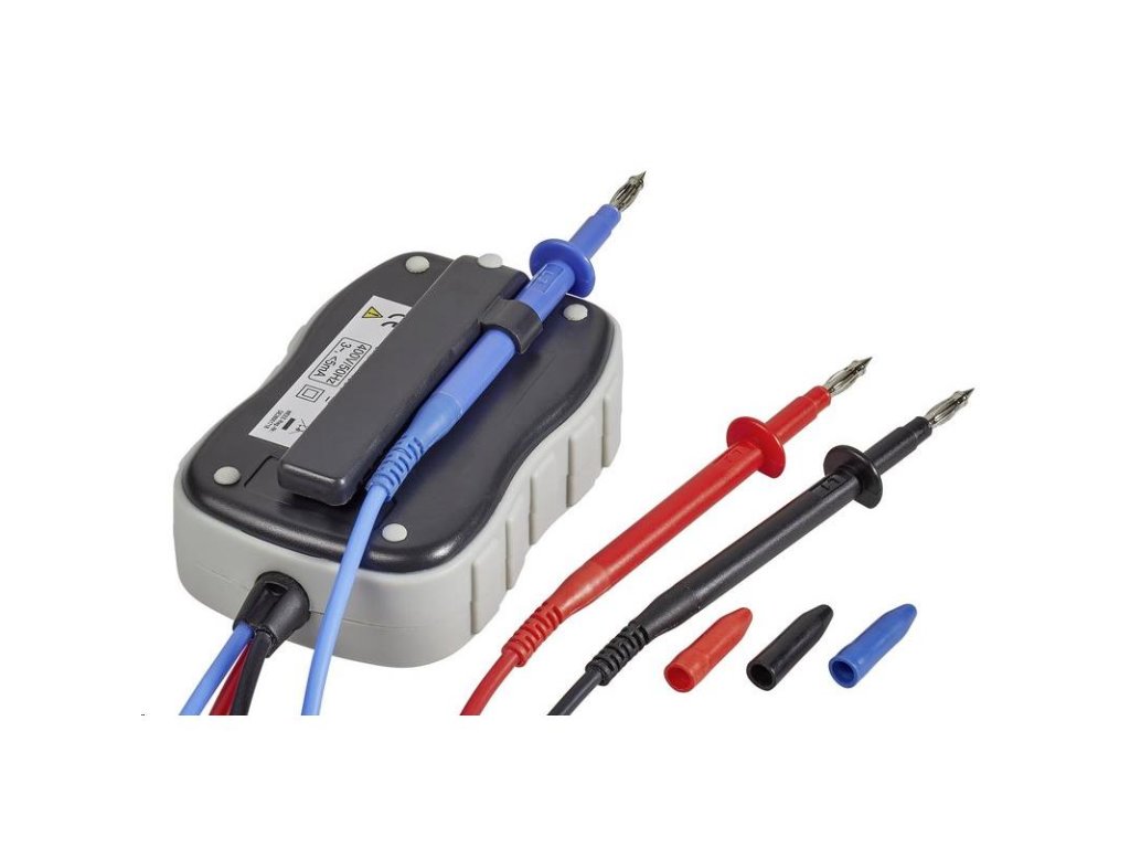 • K přístroji jsou pevně připojeny 3 měřící kabely o délce 80 cm se špičatými měřícími hroty (v barvě černé, červené a modré).