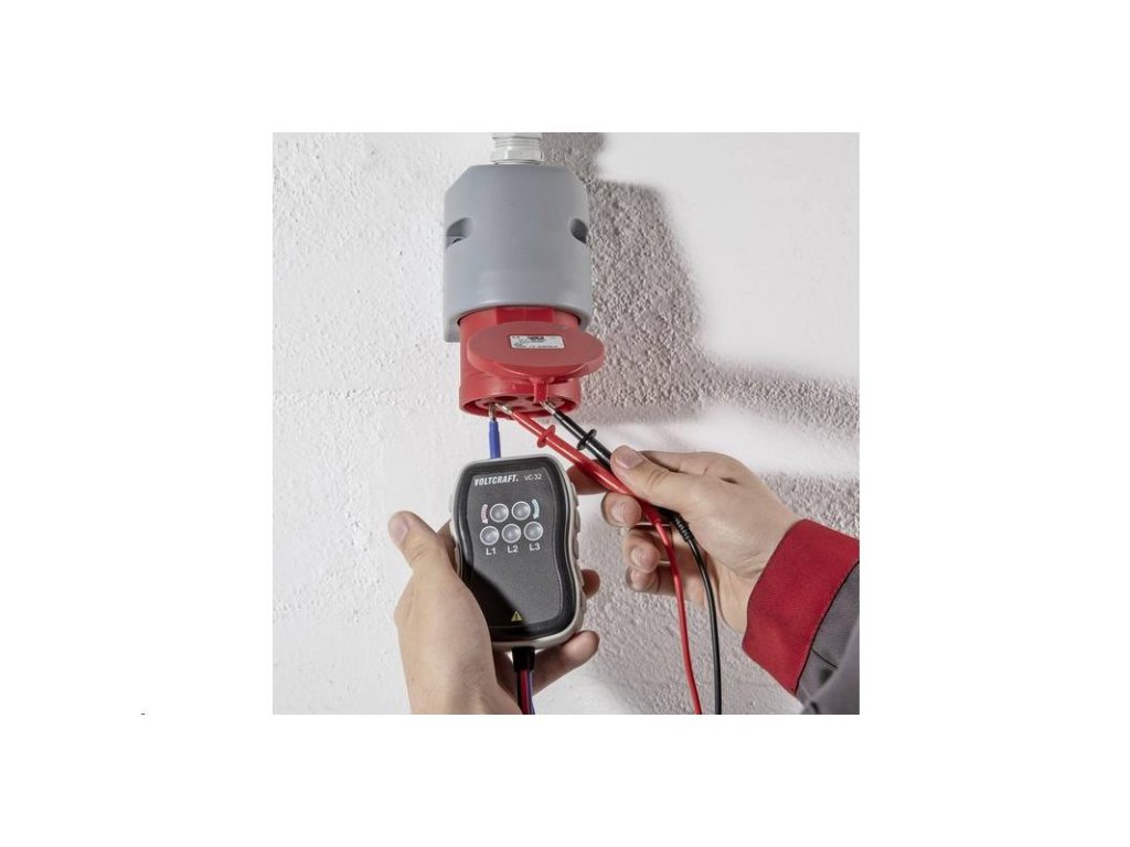 Tester VOLTCRAFT VC-32 slouží ke kontrole sledu fází a směru otáčení motorů v třífázových sítích s napětím 250 až 400 V AC v kategorii přepětí „CAT III 400 V“ (domovní elektroinstalace).