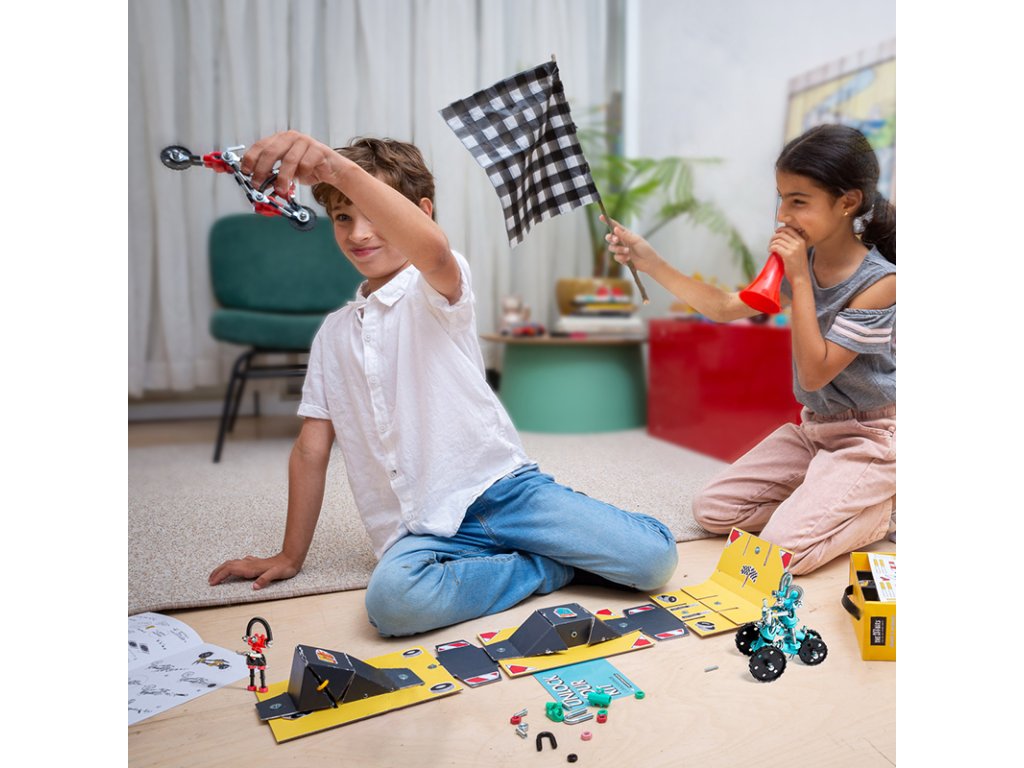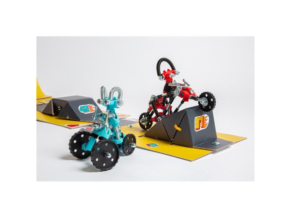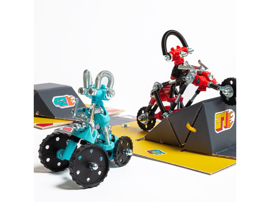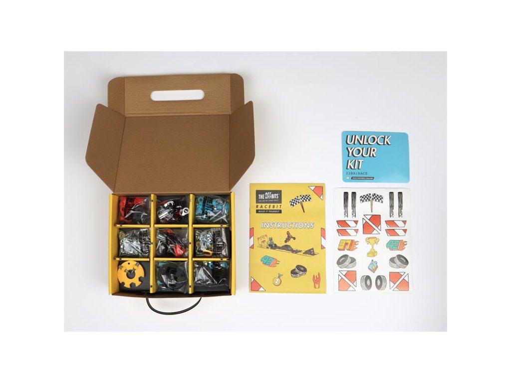 Je čas zařadit rychlost a odstartovat závod. Přeměňte kartonovou krabici OffBits na závodní dráhu s rampou a sestavte závodní týmy z matic a šroubů. Sestav CharlieBit a jeho červenou motorku CrossBit a pak JumperBit s jeho parádním modrým ScooterBitem. Nechte je mezi sebou závodit a vyzkoušejte, jak vysoko dokáží přeskočit rampu nebo kdo udělá nejhustší triky. Sada obsahuje více než 200 barevných matic, šroubů, tvarovaných kousků, samolepek a naše víceúčelové balení s nulovým odpadem, které se promění v součást herního zážitku a stane se závodní dráhou. Popusťte uzdu své fantazii. Tato sada umožňuje vytvoření čtyř modelů s dalšími nekonečnými možnostmi pro vaše vlastní kreativní nápady. Jedná se o hračku, která pomáhá mladým lidem růst v oblastech vědy, technologie, inženýrství, umění a matematiky. Hračky OffBits také podporují rozvoj jemné motoriky, prostorové představivosti, řešení problémů a nápadité hry. Co můžete postavit:CharlieBit a jeho červenou motorku CrossBit, JumperBit s jeho parádním modrým ScooterBitem plus nekonečné množství jedinečných výtvorů, které můžete postavit pomocí své fantazie. Máte kolem sebe karton, šroubky nebo jiné zábavné materiály? Vylepšujte s předměty každodenní potřeby a vytvořte také své vlastní jedinečné vynálezy. Hlavní vlastnosti: obsahuje nářadí pro sestavení stavebnicekompatibilnost s každodenními předmětyrozvoj kreativity, jemné motoriky i logického myšlenívhodné od šesti letvíce než 200 dílůobal je součástí herního zážitku Ilustrační foto balení:Dodatočné parametre
