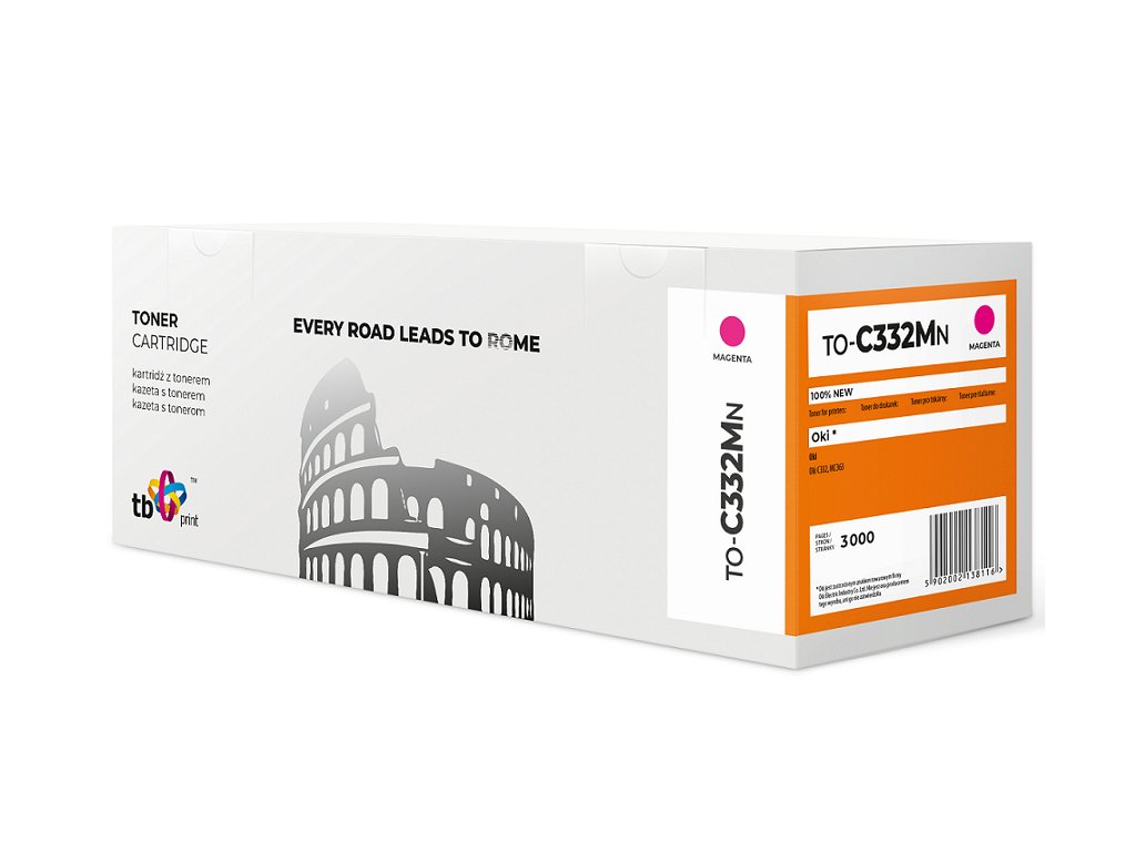 TB Print je dlouholetým výrobcem alternativních kazet pro celou řadu tiskáren světových výrobců. Kazety a tonery splňují nejpřísnější nároky na kvalitu i tisk samotný. TB Print je synonymum pro dokonalé věrný, ostrý tisk a to za stále atraktivní cenu. Typ (cartridge/toner): Toner Kapacita tisku (stran): 3.000 Chip: Ano Barva: Magenta Kompatibilita s: Oki C332 / MC363Dodatočné parametre