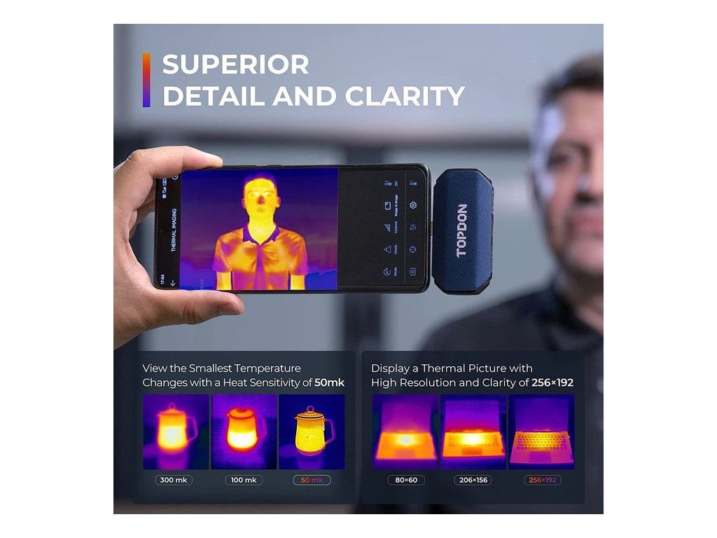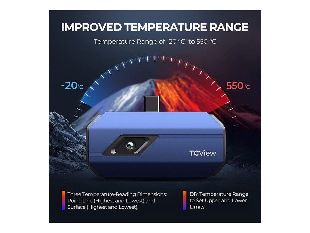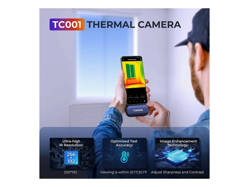 Kapesní termální kamera TOPDON TCView TC001 Termokamera TOPDON TC001 s konektorem USB-C promění Váš telefon, nebo notebook, v chytrou termokameru. S tímto zařízením nyní přichází do vašeho smartphonu technologie, která patřila pouze speciálním jednotkám Drahé profesionální termokamery, se nyní stávají dostupné pro všechny! Řada TC001 společnosti TOPDON promění Váš telefon v chytrou infračervenou termokameru. Je navržena tak, aby poskytoval přesné termo-snímky čehokoliv, ať už jde o domácí využítí - opravy, profesionální automobilové služby nebo ochranu plodin a dobytka. Zkontrolujte si doma vaše tepelné úniky a šetřete peníze! TOPDON TCView dokáže pořídit termální záznam snímaných předmětů, osob, zvířat, prostoru a ukládat je pro pozdější přehrání. Termokameru TOPDON TCView můžete propojit jak s mobilním telefonem s operačním systémem Android, tak s PC, nebo notebookem s Windows (Version 1.0.0) Pro Windows 7, Windows 10 a Windows 11 (64-bit) Navzdory kompaktní velikosti má odolné hliníkové pouzdro odolné proti poškození z důvodu pádu z 1 metru. VYNIKAJÍCÍ DETAILY A ČISTOTA ZOBRAZENÍ S kamerou s ultravysokým IR rozlišením 256*192, můžete vidět skutečně detailní záběry, když je potřebujete. Jasnost čočky je hvězdnou vlastností TC001, která nabízí rotaci obrazu a různé funkce vylepšení zobrazení pro pohodlnější ovládání. THERMAL IMAGING APP – objevte více Stáhněte si aplikaci TCView do Vašeho telefonu, NTB, PC, a prohlížejte si termo snímky v reálném čase s aktuálními teplotami, vytvářejte teplotní grafy v reálném čase, nebo si nahraná data pouštějte později ze záznamu. V APP můžete nastavit měření teplotního rozsahu na vámi zvolené: • přímce, popřípadě několika přímkách • ve vybrané oblasti • nebo v na několika vybraných bodech současně Pokud je rozsah překročen, budete automaticky upozorněni na obrazovce. Všechny tyto varianty výběru si můžete také současně zaznamenávat a později přehrát. Jedinečná technologie vylepšení obrazu TODPON Obsahuje 10 druhů barevných palet, úpravu ostrosti a kontrastu, obraz v obraze a mnoho dalších funkcí. Technologie vylepšení obrazu činí zorné pole jasnějším a detailnějším a zlepšuje funkci rozpoznávání cíle. I VE TMĚ SE DÁ VIDĚT VŠE Proměňte Váš telefon s Androidem, nebo notebook v chytrou, infračervenou termokameru a vydejte se na lov. Díky TCView TC001 se do Vašeho smartphonu dostává technologie, která byla dříve unikátní pro speciální jednotky. Nyní i v té největší tmě uvidíte na svém telefonu, nebo tabletu, úplně vše. PŘEDNOSTI TERMOKAMERY TOPDON TCView • Přesné měření teploty, detekuje teploty od -20°C do 400°C • Přednastavený teplotní rozsah pro automatickou detekci a hlášení abnormálních teplot. • Zaznamenávejte údaje o teplotě prostřednictvím aplikace. • Vysoce kvalitní zobrazení obrazu s kamerou s vysokým rozlišením (256×180). • Robustní hliníkové pouzdro testováno pro pád ze 1 metrů. • Jednoduše přenositelné, pouze 37g (kapesní rozměry) • Pomocí aplikace můžete zobrazit graf teploty v reálném čase. • Nový a vylepšený procesor s vyšší rychlostí v menším balení. PRAKTICKÉ VYUŽITÍ KDEKOLIV S množstvím reálných využití od profesionálního, až po každodenní využití v domácnostech! • Opravy v domácnostech (kontrola potrubí - únik vody, kontrola izolací ať chladících, tak tepelných) • Kontrola elektrických zásuvek, domácích spotřebičů - jejich přehřívání (odhalení možného budoucího problému) • Neocenitelný pomocník v autoopravnách a servisech • Pomoc lovcům a zemědělcům při odhalování zvířat • Okamžité měření teploty v kanceláři • Přehřívání - vysoká spotřeba přenosné lednice • Pracovní teplota wifi routeru • Únik tepla z obytných prostor TECHNICKÉ SPECIFIKACE • Rozlišení: 256 X 192 pixelů • Rozsah teploty objektu: -4? až 1022? (-20? až 550?) • Tepelná citlivost: 50 mK • Hmotnost pouhých 29g • Detekční teplota ± 2 °C (3,6 °F) (nižší MK = vyšší citlivost a lepší snímky)Dodatočné parametre