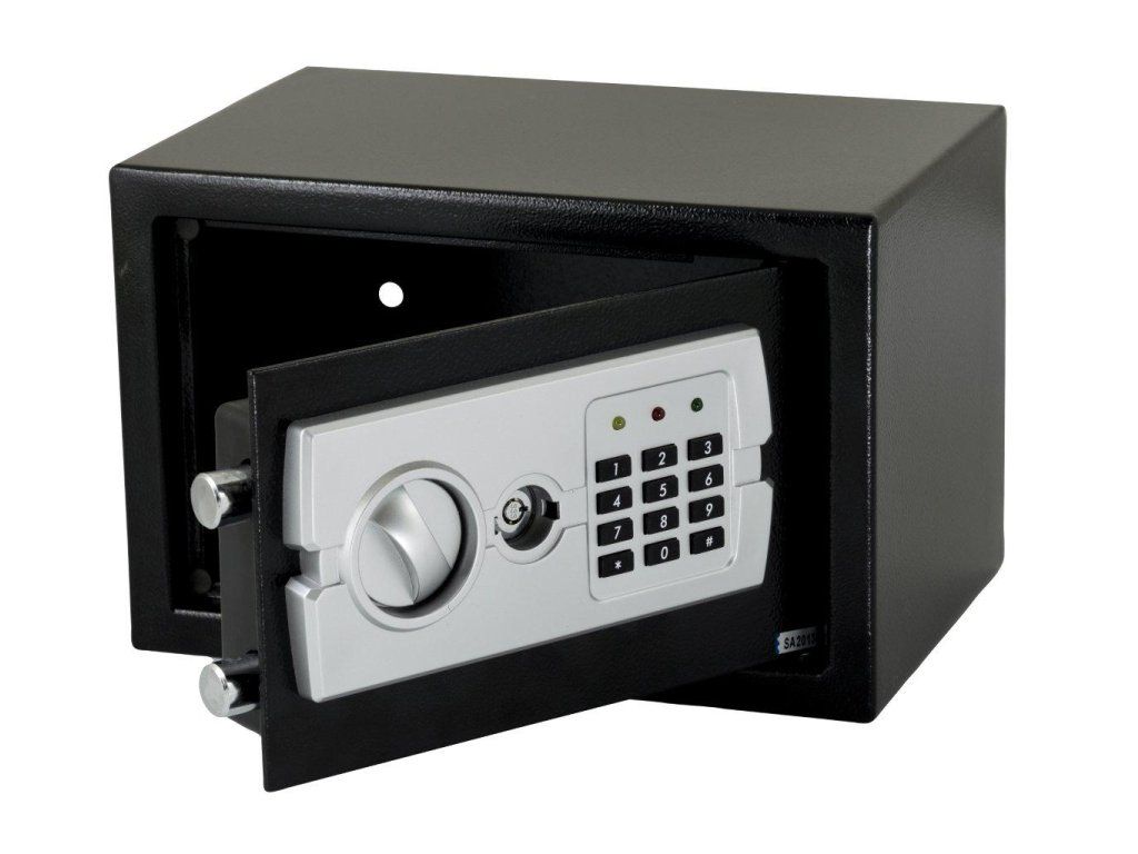 Tieto domáce trezory sú v modernej čiernej farbe a majú kvalitné kovové prevedenie.