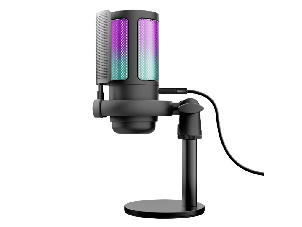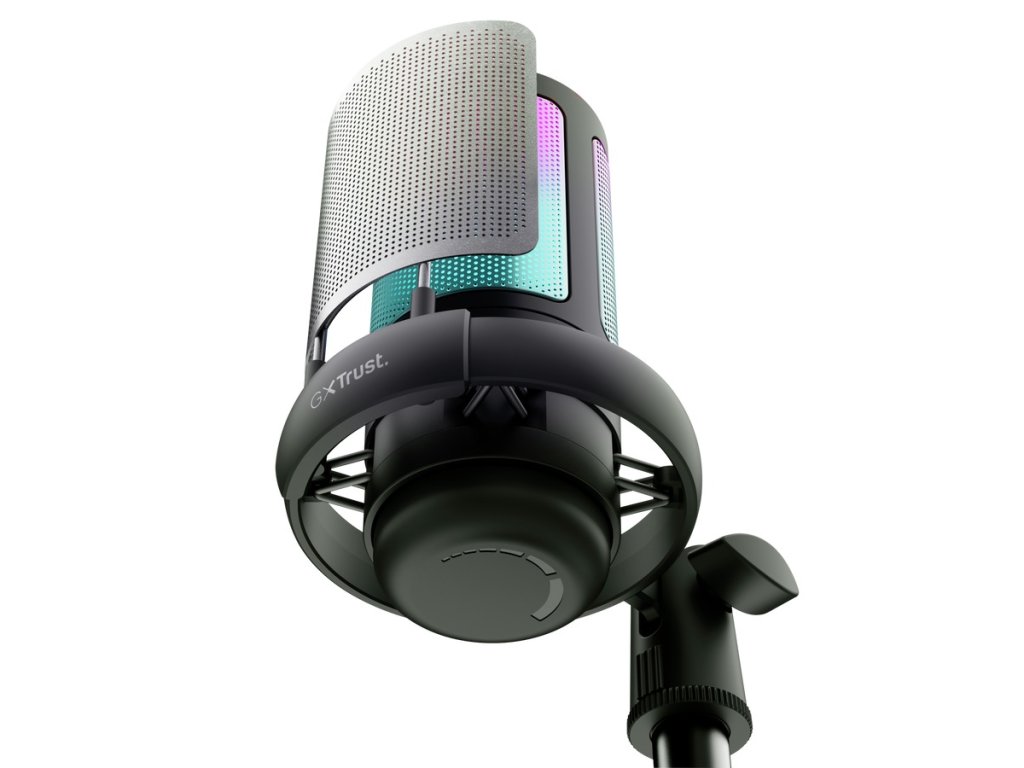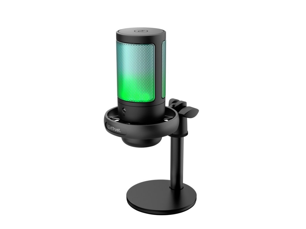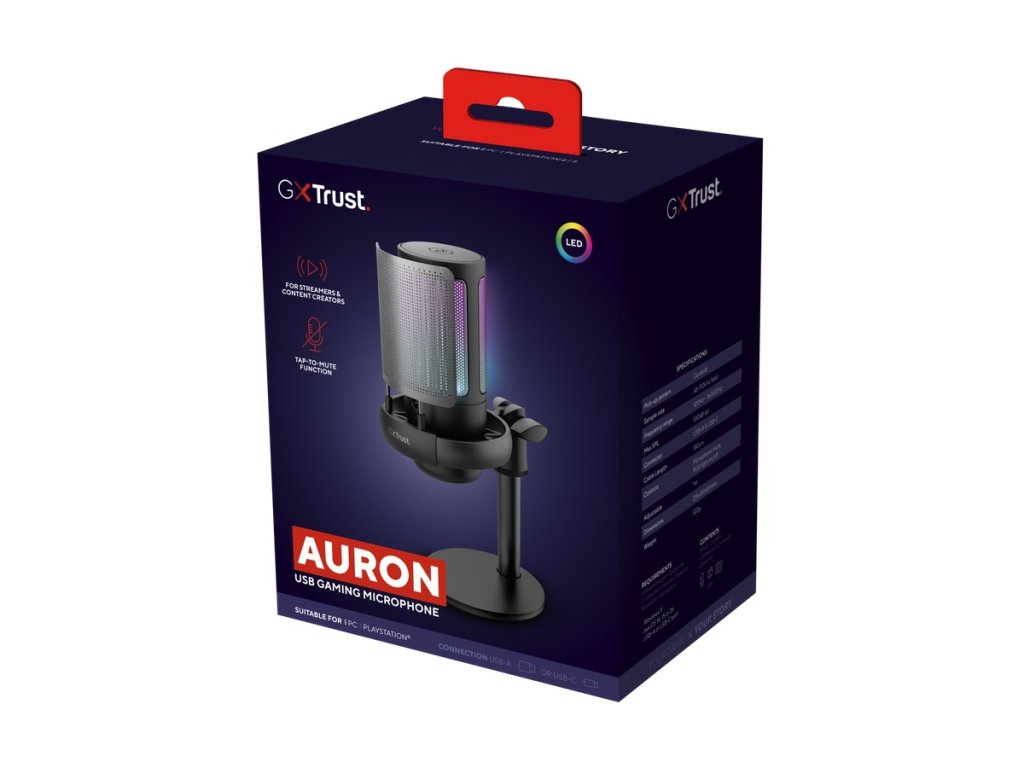 Trust Gaming GXT 238 Auron kompaktní a stylový podsvícený USB mikrofon * herní USB mikrofon ideální pro streamery a tvůrce obsahu * funkce vypnutí zvuku klepnutím nabízí maximální pohodlí při nahrávání * kardioidní záznamový vzor zajišťuje, že mikrofon nahrává ve směru vašeho hlasu * přehrávejte zvuk a přímo sledujte, co nahráváte, prostřednictvím výstupu pro sluchátka * ovládací kolečko v dolní části pro nastavení úrovně mikrofonu * gradientní RGB podsvícení * externí pop filtr a integrovaný tlumicí držák zajišťují minimalizaci nežádoucích zvuků * praktický kovový stojan s nastavitelným úhlem * snadné připojení k počítači nebo konzoli Playstation® 5 pomocí 1,8m kabelu USB-C/USB-C s adaptérem USB-C na USB-A Technické parametry Hladina akustického tlaku: 100 dB Maximální vzorkovací frekvence: 48 kHz/16 bitů Podsvícení: ano Poměr signálu k šumu: 80 dB Frekvenční rozsah: 20Hz-20kHz Citlivost: 40 dB Ztlumení mikrofonu: ano Typ připojení: USB-C, USB-A Délka kabelu: 1,8m Barva: černá Rozměry: 215x120x85mm Hmotnost: 322g Požadavky na systém: volný port USB-C/USB-A, Windows Obsah balení: * herní mikrofon * pop filtr * kabel o délce 1,8 m s konektorem USB-C * adaptér USB-C na USB-A * návod k použití Záruka: 2 rokyDodatočné parametre