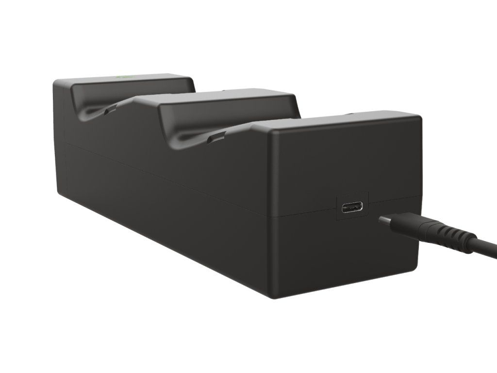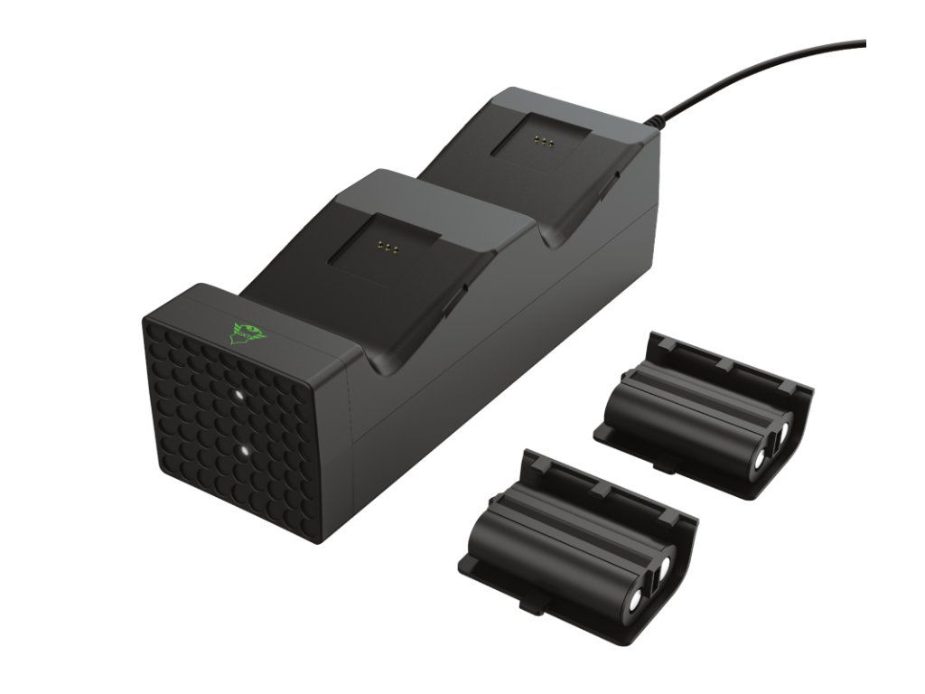 Trust GXT 250 Duo Charging Dock pro Xbox Series X/S. Nabíjejte až dva původní herní ovladače současně, obsahuje dvě dobíjecí baterie. *Nabíjejte až dva ovladače současně *Uložte a nabijte své ovladače na bezpečném místě *Nabíjecí stanice doplňuje styl vaší konzoly *Zahrnuje dvě dobíjecí baterie 1200 mAh *Indikátor nabíjení zobrazuje stav nabití *Poháněno USB portem vaší konzoly *Součástí je kabel USB-C Specifikace *Rozměry: 58 x 42 x 250 mm *Hmotnost: 160 g *Kompatibilita: Xbox Series X/SDodatočné parametre