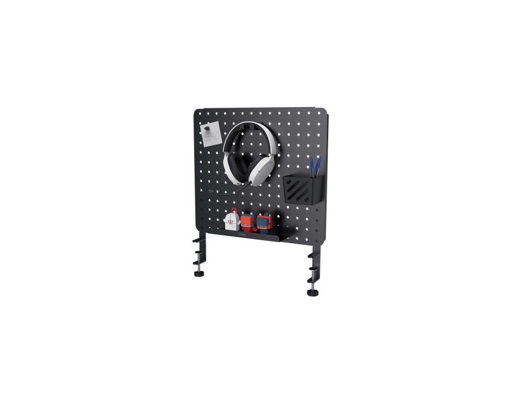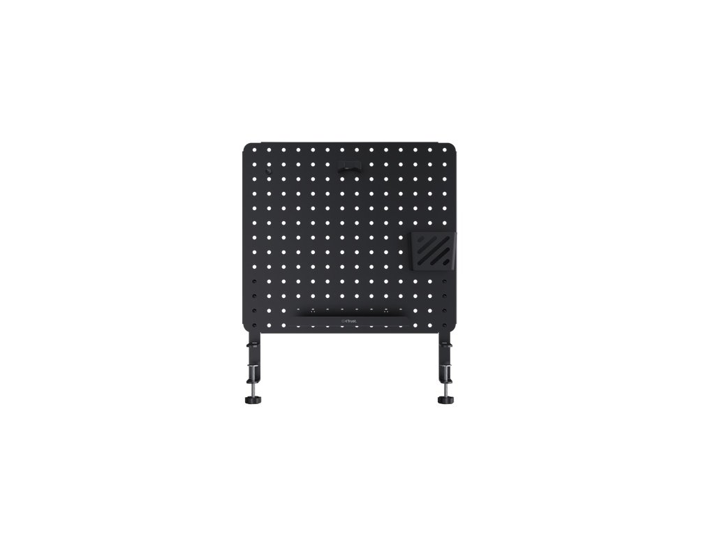 Trust Gaming GXT 724 Vesto Kovový organizér na stůl s děrovanou deskou pro udržení čistého a organizovaného herního prostoru. Typ produktu: Kovový stolní organizér s pegboardem Barva: Černá Materiál: Kov (ocelová konstrukce) Hmotnost: 2,6 kg Rozměry (Š x V x H): 47 x 2 x 60 mm Kompatibilita / použití: Organizace kabelů, sluchátek, gamepadů, ovladačů Obsah balení: Děrovaná deska, Police, Košík, Držák na sluchátka, Magnet, Uživatelská příručka Další vlastnosti: Protiskluzové nožičky, prostorově úsporný, přizpůsobitelný háčkyDodatočné parametre