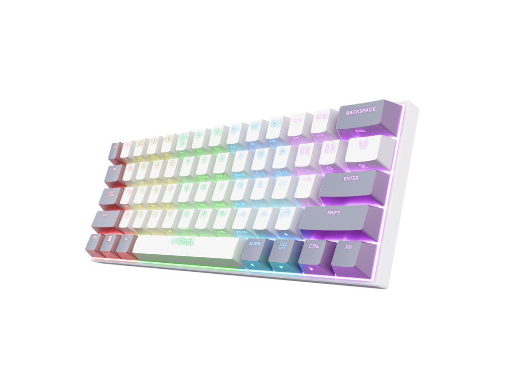 TRUST GXT 873 Acira je malá klávesnice s velkým potenciálem Bezdrátová mechanická herní klávesnice Acira nabízí flexibilitu tří režimů prostřednictvím přijímače USB-A, dvou připojení Bluetooth* a dodávaného nabíjecího kabelu USB-C-A, což vám umožňuje vybrat si připojení a hru přesně podle vašich představ. Maximální flexibilita, žádné kompromisy – jakým způsobem budete hrát? *Připojení Bluetooth není k dispozici na PlayStation® nebo Xbox. Díky ultrakompaktnímu 60% provedení tato mini klávesnice poskytuje více prostoru pro pohyb myši. Má multifunkční klávesy FN**. Až 60 hodin přehrávání světla na jedno nabití. Klávesnice má plnohodnotné RGB podsvícení s až 16,8 miliony barev k dispozici. Technické parametry *Typ připojení: bezdrátová USB-A receiver nebo Bluetooth, případně přes USB-C nabíjecí kabel *USB verze: 2.0 *Délka kabelu: 180cm *Typ konektoru: USB-C *Layout: US *Rozměry: 31 x 290 x 100 mm *Hmotnost: 533 gDodatočné parametre