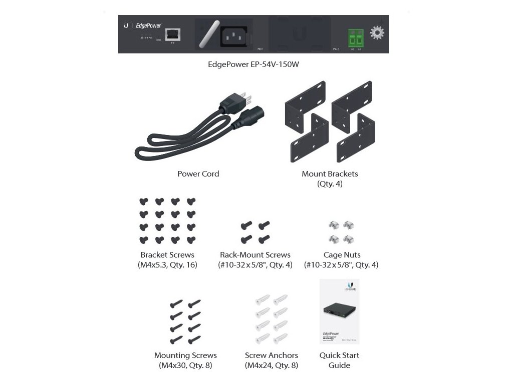 Edgepower je výkonné rackmount napájecí řešení s webovým managementem vhodné pro napájení EdgePoint routerů a switchů. EdgePower obsahuje 2 šachty pro modulární napájecí zdroje, které lze pomocí managementu sloučit (max. výkon 300W) nebo automaticky zálohovat (max. výkon 150W). Napájecí zdroje jsou typu hot-swap a je možné je vyměnit za chodu. EP-54V-150W je v základu dodáván s jednou obsazenou šachtou se vstupem na 230V s maximálním výstupním výkonem 150W, úchyty do racku a potřebnými šroubky. Technické parametry Fyzické charakteristiky Konstrukce: Rackmount Provozní teplota [°C]: 0 až 40 Hmotnost [g]: 2700 Hloubka [mm]: 287 Šířka [mm]: 300 Výška [mm]: 43 Konektory a rozhraní Rychlosti LAN: (1) 10/100Mbps Napájení Výkon [W]: 150 Výstupní napětí [V]: 54 Výstupní proud [A]: 2,7 Software Managment přes LAN: Ano Výchozí IP adresa: Dynamická z DHCP, 192.168.10.1 Výchozí jméno a heslo: ubnt / ubntDodatočné parametre