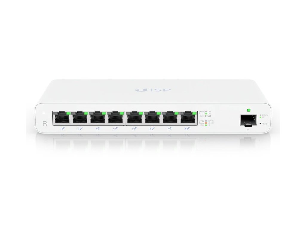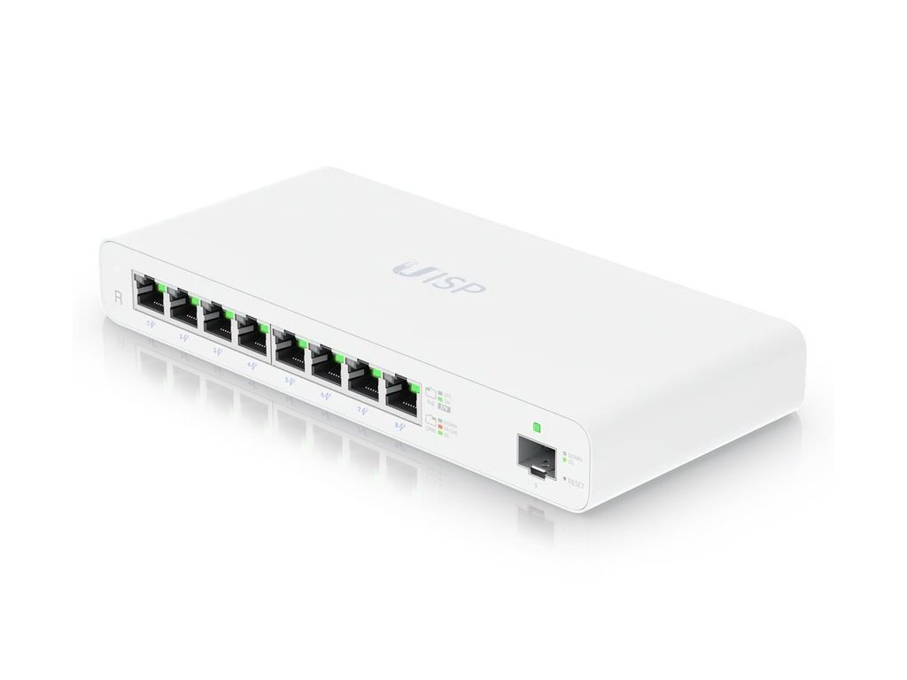 Ubiquiti UISP Router UISP Router je osazen osmi GbE PoE RJ-45 a jedním GbE SFP slotem pro uplink. Celková napájecí PoE kapacita je 110W. Router lze navíc upevnit ke zdi, díky přiloženému držáku. 8x GbE PoE RJ-45 port 1x GbE SFP slot 110W PoE kapacita Fanless - chlazení bez ventilátoru pro tichý provoz Možnost montáže na stěnu (montážní sada je součástí) Snadné nastavení pomocí technologie Bluetooth prostřednictvím mobilní aplikace UISP Součástí balení je DC adaptér 27V/4,4A. ZÁKLADNÍ SPECIFIKACE Procesor: MIPS1004KC, 880MHz, 2jádrový Operační paměť: 512MB DDR3 Interní paměť: 512MB NAND Porty: 8x RJ-45, 1x SFP Podpora PoE: ano, 8x pasivní (110W PoE budget) Technické detaily Použití v interiéru: ano Použití v exteriéru: ne Provedení: samostatně stojící Provedení: na zeď NAND (MB): 512 Provozní teplota max (°C): 50 Provozní teplota min (°C): -10 PoE výstup: pasivní PoE výstup (počet): 8 Procesor: MIPS 1004KC, 880MHz Paměť - velikost paměti (MB): 512 Displej: ne Komunikace Podpora 3G: ne Podpora 4G/LTE: ne Síťová rozhraní LAN: ano Gigabit LAN: ano Wi-Fi: ne Režim router: ano Režim Bridge: ne Režim AP: ne Režim repeater: ne Režim klient: ne Rychlost portů: 1Gb/s Vstupy a výstupy RJ-45 (počet): 8 Rozhraní: LAN, SFP Podpora MicroSD karet: ne Napájení Podpora POE: ano Spotřeba (W): 10 Napájení (V): 24-28 (DC) Napájení max (jack) (V): 28 Napájení min (jack) (V): 24 Podpora Slot pro SIM: ne Fyzické vlastnosti Barva: bílá Hmotnost (g): 600 Rozměry: 210,4x95x29mm Váhová kategorie: Lehký - do 2kg Další výbava a vlastnosti Shoda: CE, FCC, ICDodatočné parametre