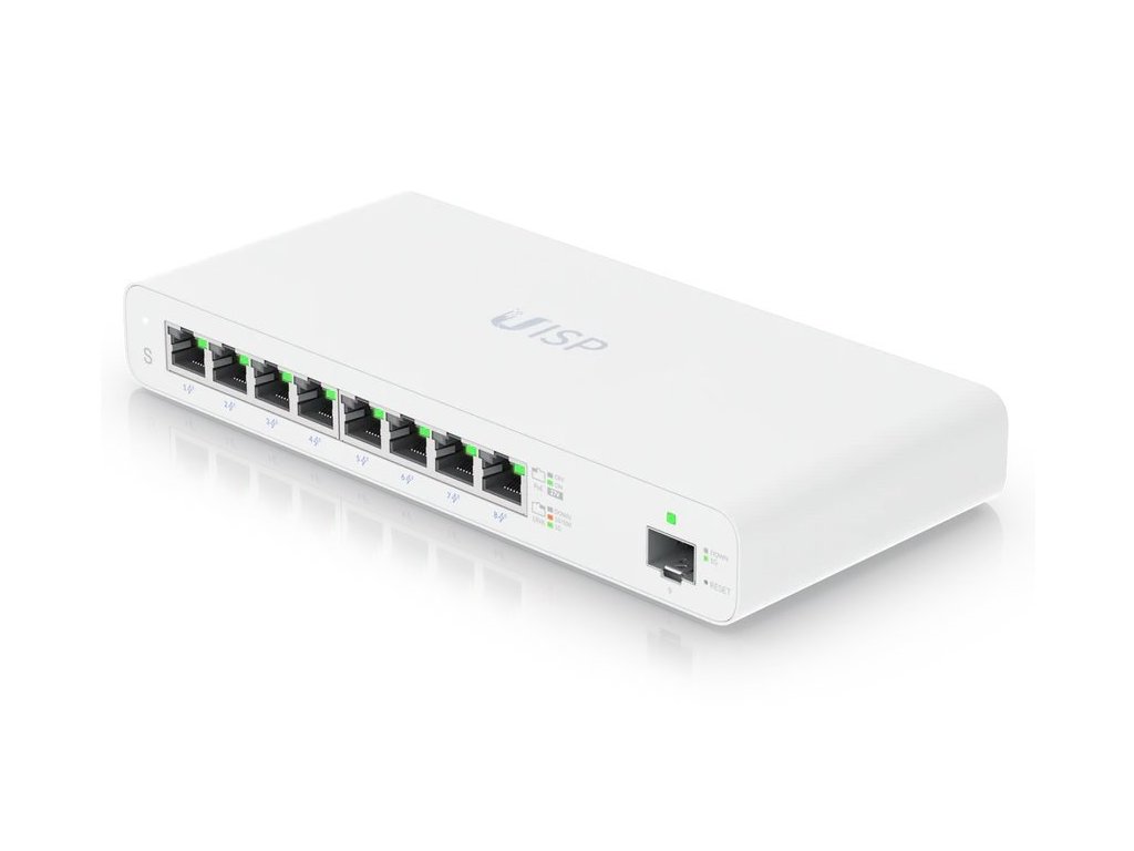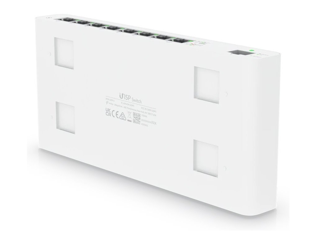 Ubiquiti UISP Switch UISP Switch je osazen osmi GbE PoE RJ-45 a jedním GbE SFP slotem pro uplink. Jedná se o bezventilátorový L2 přepínač s kapacitou 18Gbps a rychlostí směrování 13,392Mpps. Celková napájecí PoE kapacita switche je 110W. Switch lze navíc upevnit ke zdi, díky přiloženému držáku. 8x GbE PoE RJ-45 port 1x GbE SFP slot 110W PoE kapacita Fanless - chlazení bez ventilátoru pro tichý provoz Možnost montáže na stěnu (montážní sada je součástí) Snadné nastavení pomocí technologie Bluetooth prostřednictvím mobilní aplikace UISP ZÁKLADNÍ SPECIFIKACE Porty: 8x GbE RJ-45, 1x GbE SFP Kapacita switche: 18Gbps Rychlost směrování: 13,392Mpps Podpora PoE: ano, pasivní, 8x až 30W (110 W PoEbudget) Rozměry: 210,4x95x29mm Hmotnost: 610g Technické detaily Použití v exteriéru: ne Provedení: samostatně stojící Provedení: na zeď Management: ano Kapacita sběrnice (Gbps): 18 Rychlost směrování (Mpps): 13,392 Bez ventilátorů (fanless): ano Stohovatelnost: ne Vrstva OSI: L2 Provozní teplota max (°C): 50 Provozní teplota min (°C): -10 PoE výstup: pasivní PoE výstup (počet): 8 Homologace EN50155: ne Displej: ne Síťová rozhraní LAN: ano Gigabit LAN: ano Rychlost portů: 1Gb/s Vstupy a výstupy RJ-45 (počet): 8 SFP (počet): 1 RS-232 port: ne Podpora microSD karet: ne Napájení Podpora POE: ano Napájení zařízení: externí adaptér Vstupní napětí (V): 24-28 (DC) Fyzické vlastnosti Barva: bílá Rozměry: 210,4x95x29mm Hmotnost (g): 610 Váhová kategorie: Lehký - do 2kg Další výbava a vlastnosti Shoda: CE, FCC, ICDodatočné parametre