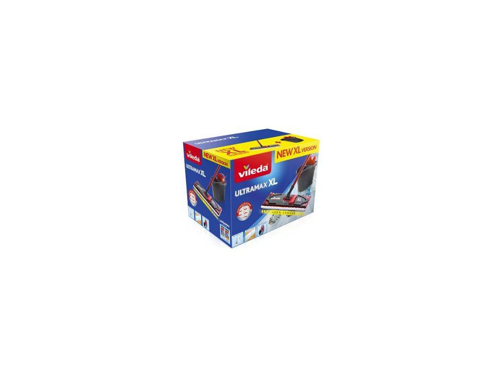 Set Vileda Ultramax XL obsahuje hlavicu, na ktorú pripevníte umývací návlek z mikrovlákien,3-dielnu skrutkovaciu tyč a vedro so žmýkacím košom.