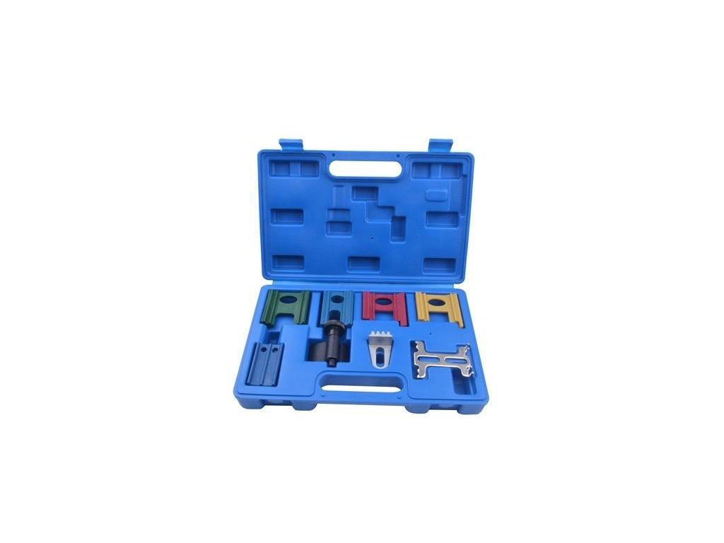 - Sada přípravků umožňuje fixaci rozvodových kol před demontáží řemene.