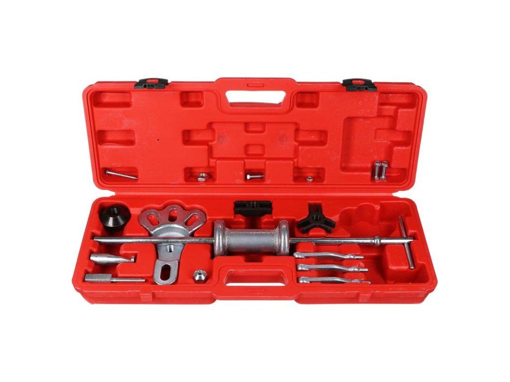 Servisní 16dílná sada univerzálních stahováků SIXTOL MECHANIC PULLER SET 16 s rázovým kluzkým kladivem k demontáži přírubových zadních náprav (nábojů kol) a předních pohonů, stahování brzdových bubnů, výměně ložisek, těsnicích kroužků apod. Kluzké kladivo dobře poslouží i při rovnání karoserie. Nástroje jsou uloženy v plastovém kufříku, který usnadňuje jejich skladování a přenos.