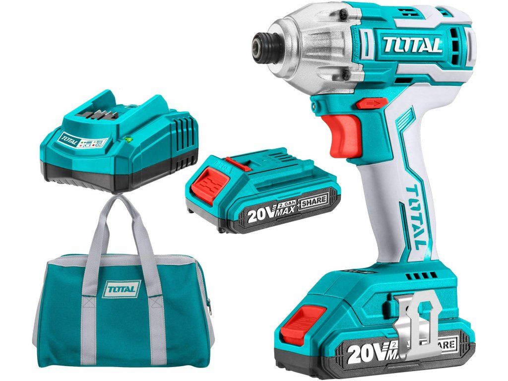 Utahovák rázový AKU 1/4", brushless, 20V Li-ion (2x), 2000mAh, industrial TOTAL-TOOLS