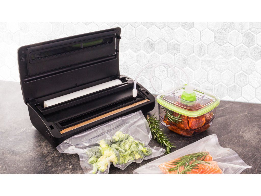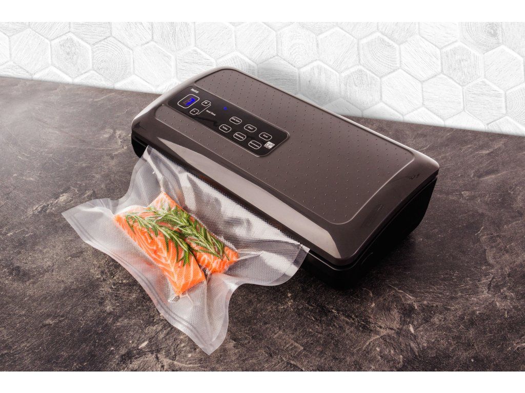 Vákuovačka G21 Nefrit vie nielen potraviny zavákuovať a zataviť vákuovací obal, ale umožňuje aj manuálne odsatie vzduchu pomocou funkcie Pulse Vákuum alebo nastavenie doby tavenia podľa typu zváranej fólie. Veľkou výhodou u tejto vákuovačky je umiestnenie fólie v zabudovanom zásobníku vnútri vákuovačky.