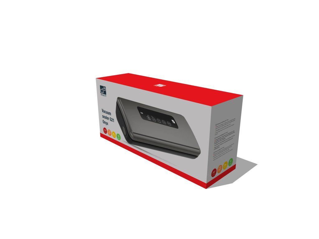 Kompaktná vákuovačka G21 Onyx si už po prvom použití získa vašu obľubu. Je malá a skladná, pritom veľmi výkonná a spoľahlivá. Duálna pumpa zabezpečí dokonalé odsatie vzduchu a silný zvar obal na zavákuovanej surovine spoľahlivo utesní.