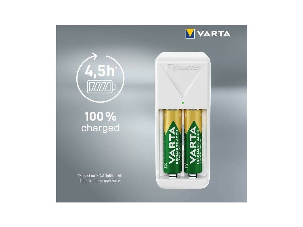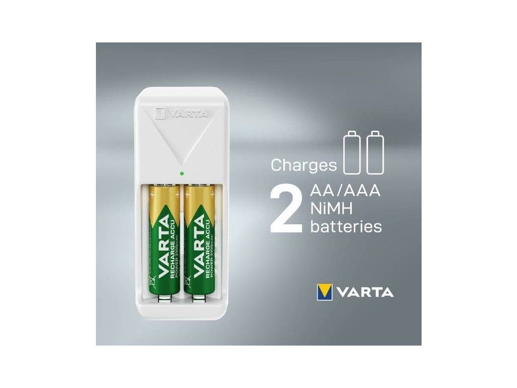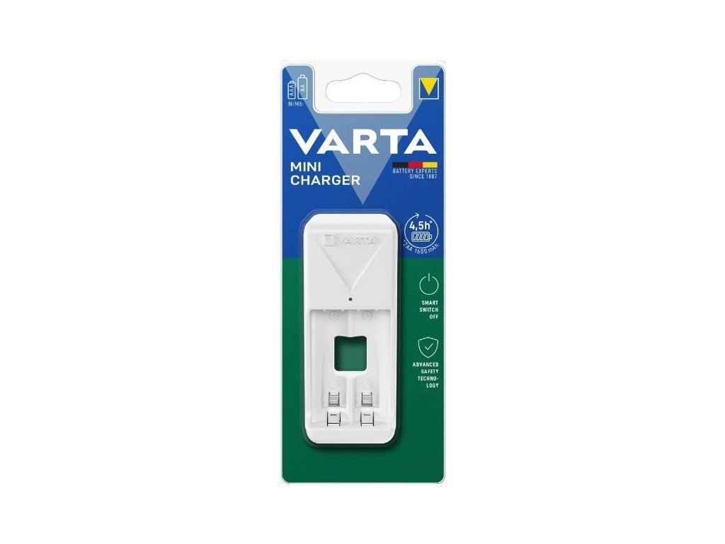 Nabíjačka VARTA Mini umožňuje párové nabíjanie. Nabíjačka je vybavená viacerými bezpečnostnými funkciami vrátane ochrany proti skratu a detekcie chybnej batérie alebo polarity.