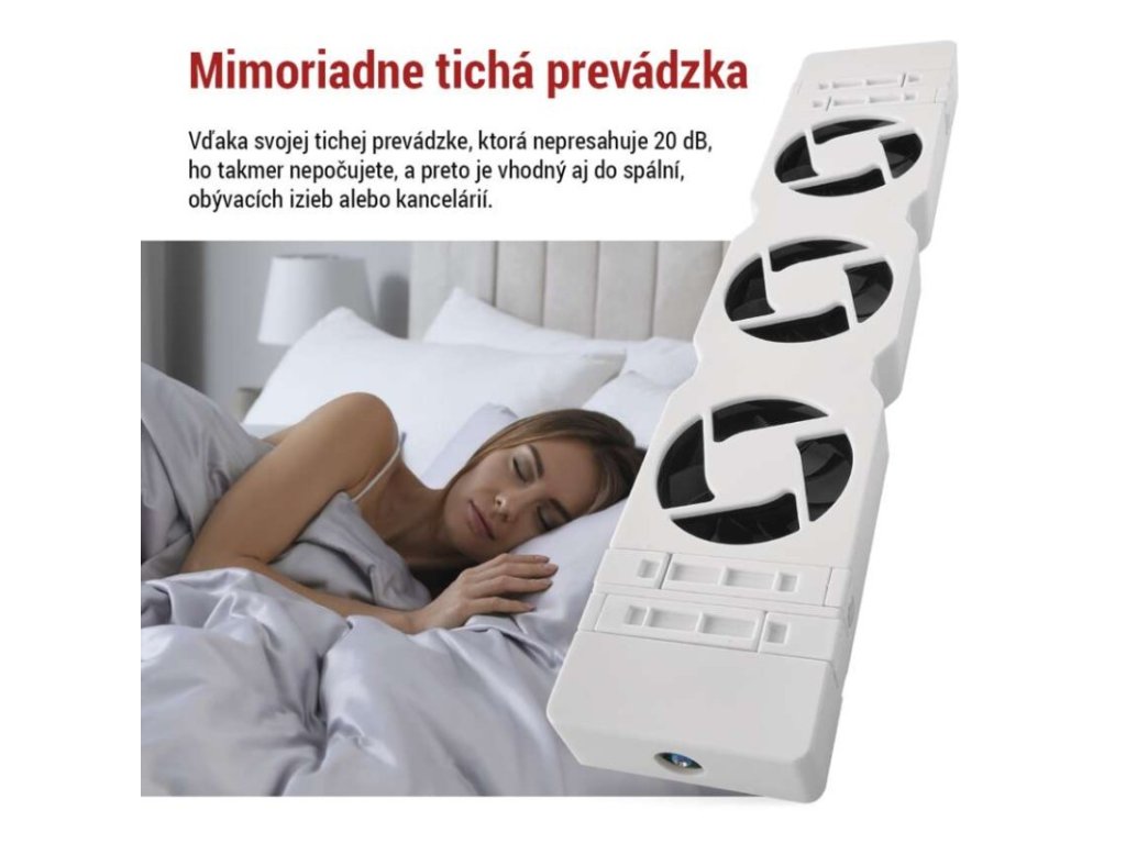 farba: biela|hlučnosť: <20 dB|materiál: tepelne odolný PC s ABS|meranie teploty: 25 °C až 70 °C, rozlíšenie 1 °C|napájanie: 5 V DC/2 000 mA (súčasťou balenia)|nastavenie teploty: 28 °C až 70 °C, po 1 °C|počet ventilátorov v balení: 1 ventilátor|predajný obal: 1 ks, papierová krabička|prietok vzduchu: 36 m³/hod pre každý ventilátor|rozmer: 25 × 70 × 345 mm|rýchlosť ventilátora: 1 800 RPM (predvolené nastavenie)|spotreba pri prevádzke: 0,8 W (1 800 RPM); 1,4 W (2 400 RPM)|spotreba v pohotovostnom režime: 0,03 W|zapnuté/vypnuté: ON 28°C – 40°C / OFF 25°C|záručná doba: 2 rokyDodatočné parametre
