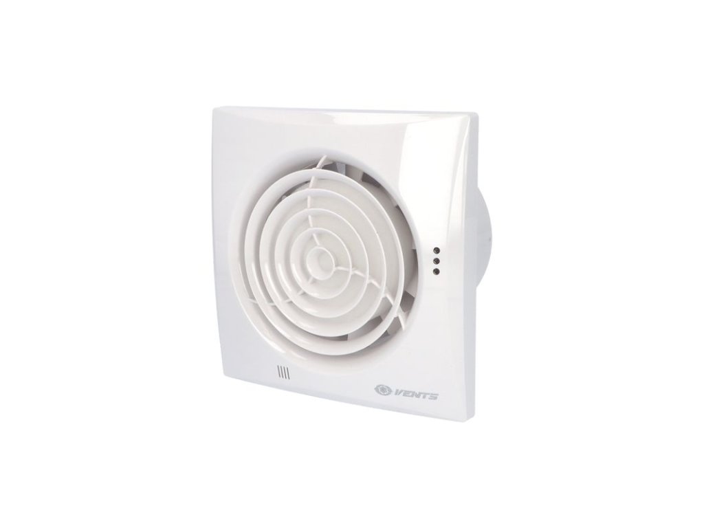 Ventilátor VENTS 125 QUIET - snížená hlučnost, zpětná klapka, nástěná montáž, 32dB, IP45, bílý, 185m3/h. Domovní axiální ventilátory Vents QUIET jsou určeny k odsávání vzduchu z menších bytových a nebytových prostor jako jsou koupelny, toalety, kuchyně, prodejny, kanceláře a podobně. Poskytují maximální průtok vzduchu v kombinaci s nízkou hlučností. Vzhledem ke svým technickým parametrům se doporučuje ventilátory používat v kombinaci s kratšímivzduchotechnickými potrubími s nižší tlakovou ztrátou, popřípadě k odsávání přímo přes stěnu. Všechny typy jsou vybaveny speciální zpětnou klapkou, která zabraňuje zpětnému proudění vzduchu. Vysoké krytí IP 45 je ideální pro montáž do koupelny.
